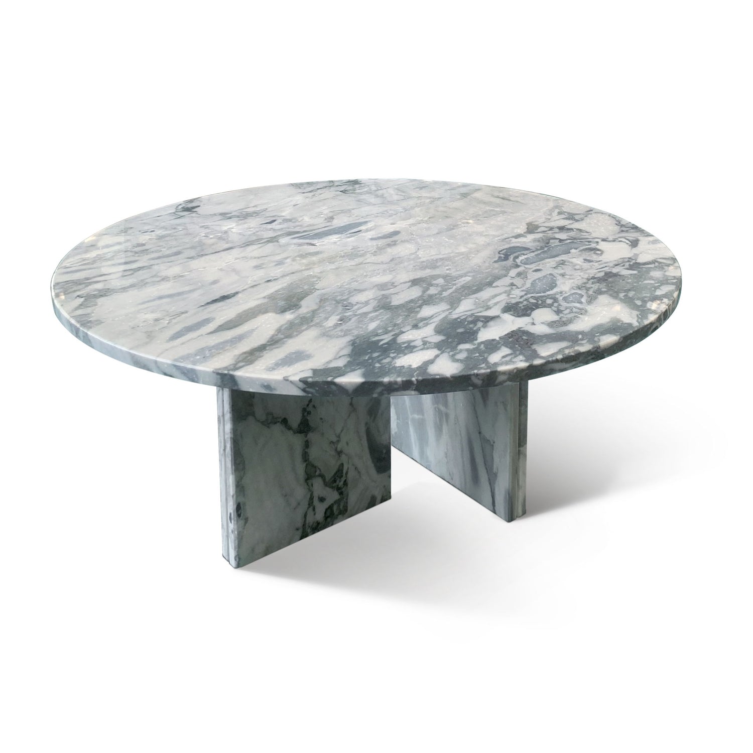 Natural Marble Coffee Table With Polished Surface, Genuine Stone - Blue Gray