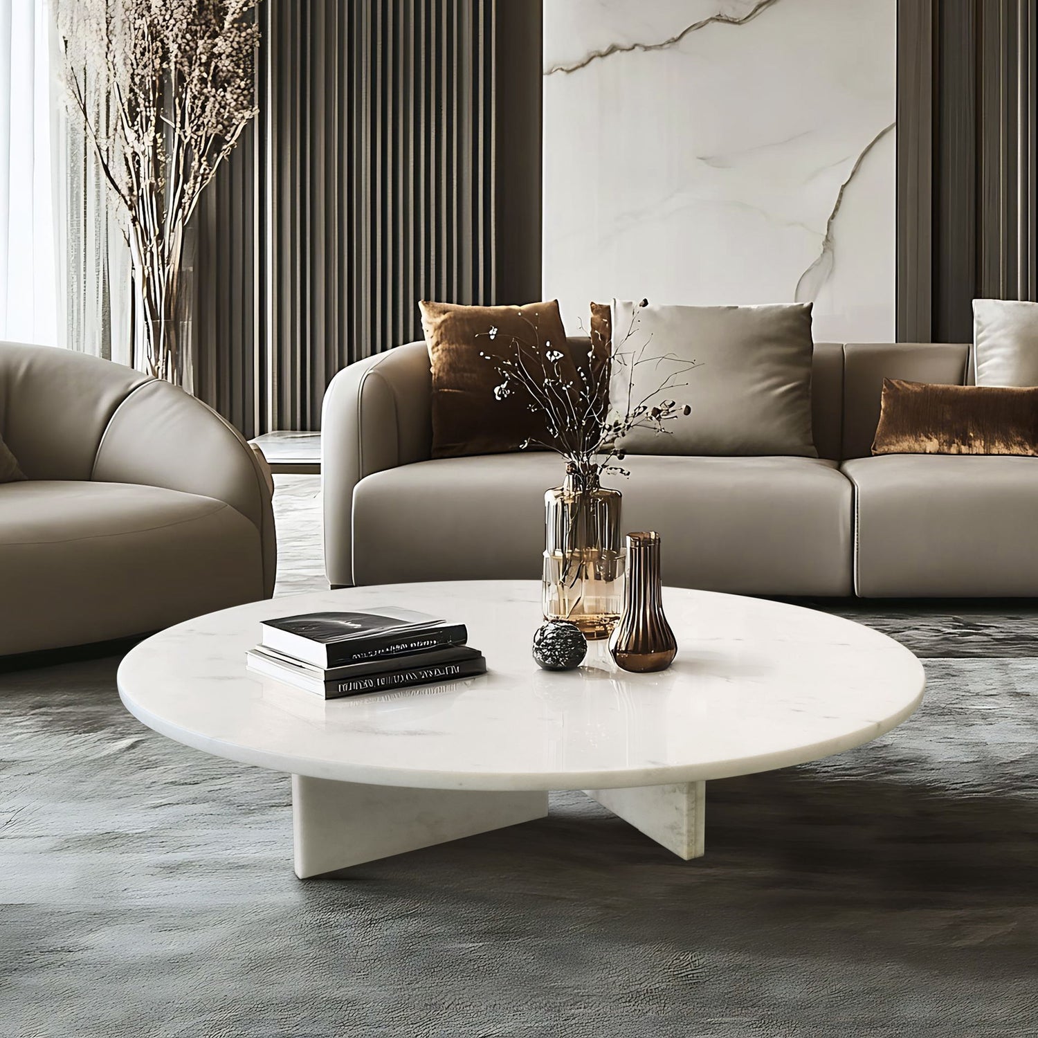 Luxury Marble Coffee Table Set Snow Mountain, Genuine Marble - White