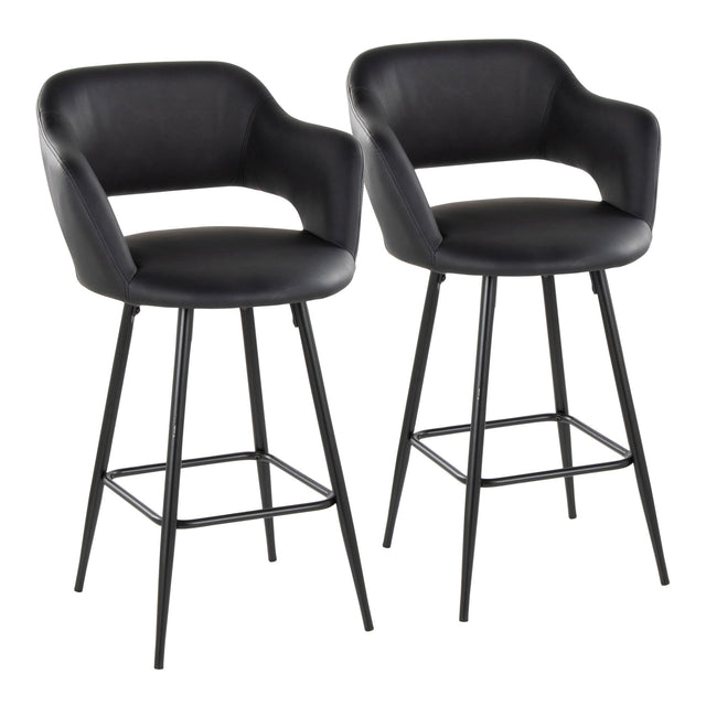 Margarite - Contemporary Fixed Height Counter Stool With Square Footrest (Set of 2) - Black