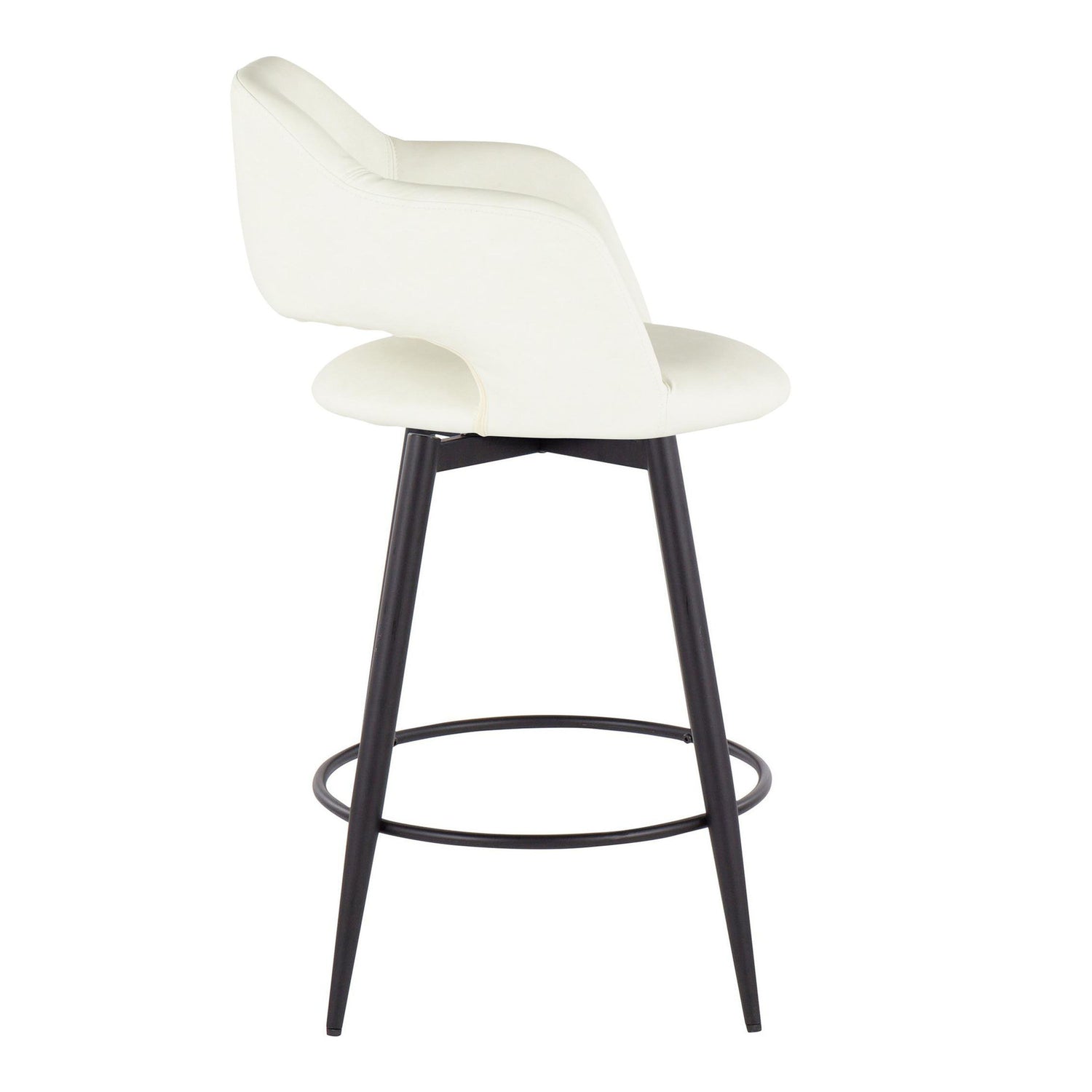Margarite - Contemporary Fixed Height Counter Stool With Swivel With Round Footrest (Set of 2) - Matte Black / Cream