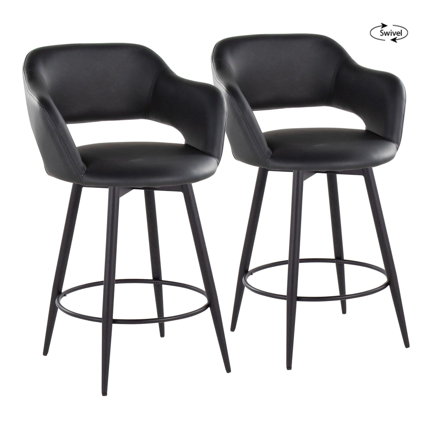 Margarite - Contemporary Fixed Height Counter Stool With Swivel With Round Footrest (Set of 2) - Black is backordered and will ship as soon as it is back in stock.