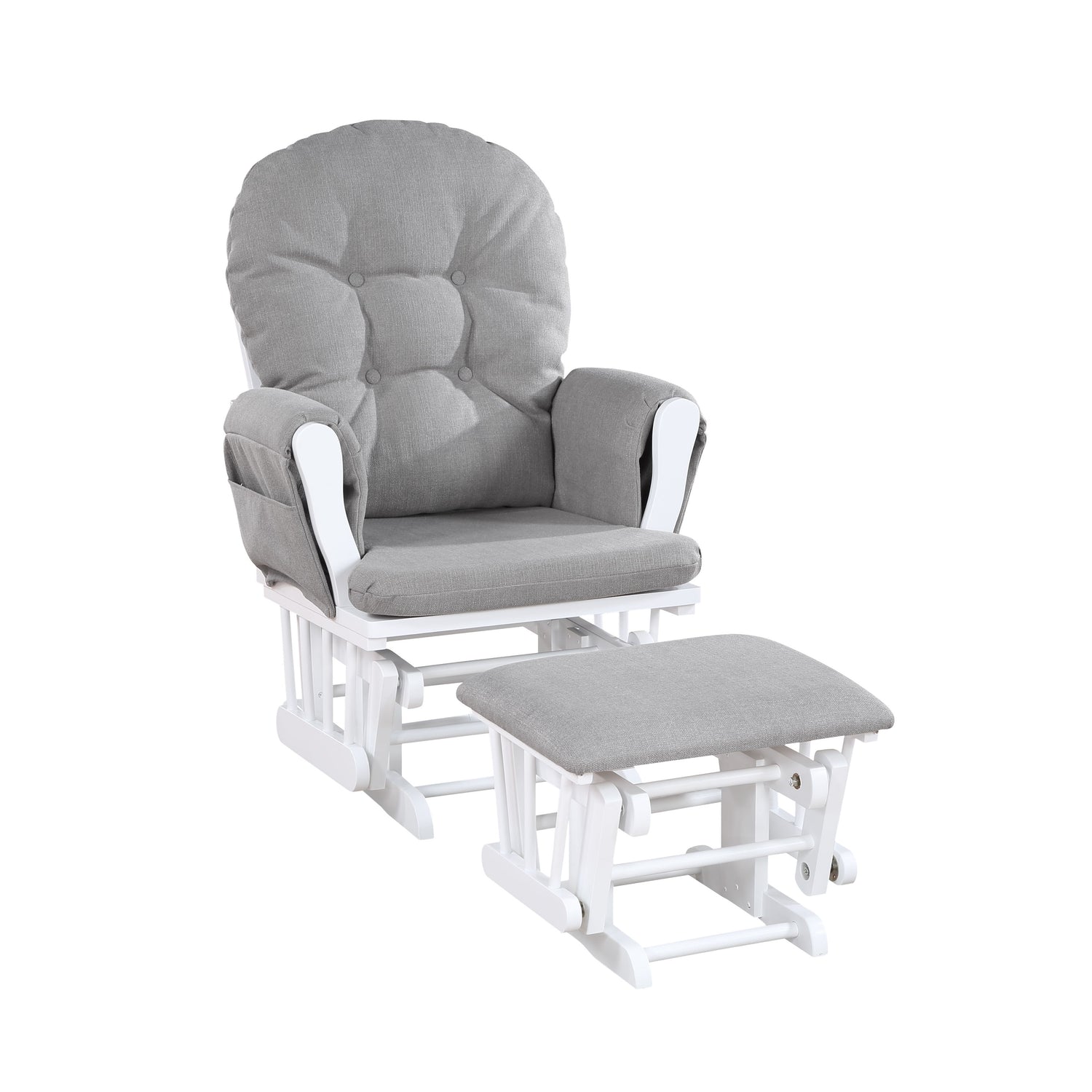 Mason - Glider And Ottoman White Wood - Gray Fabric