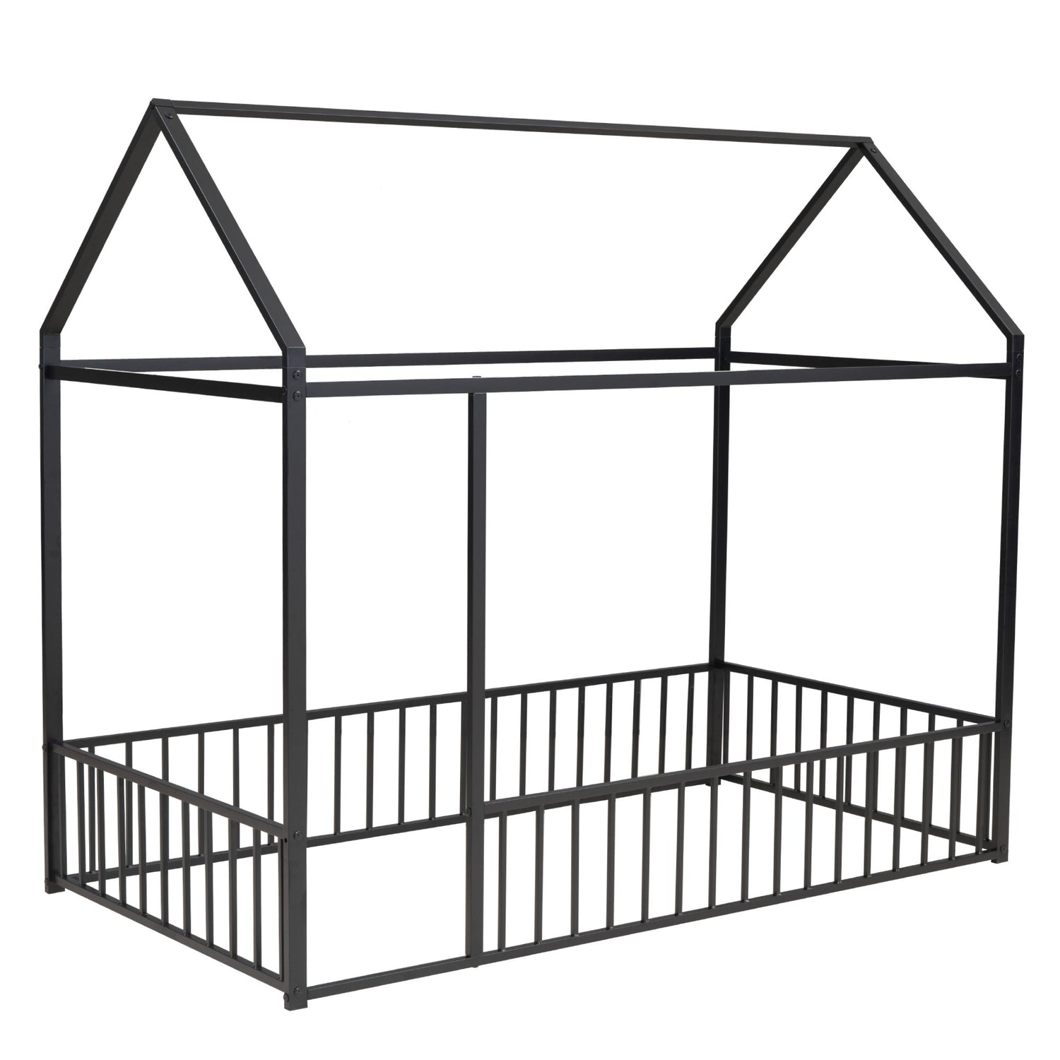 Full Size Bed House Bed Frame With Fence - Black