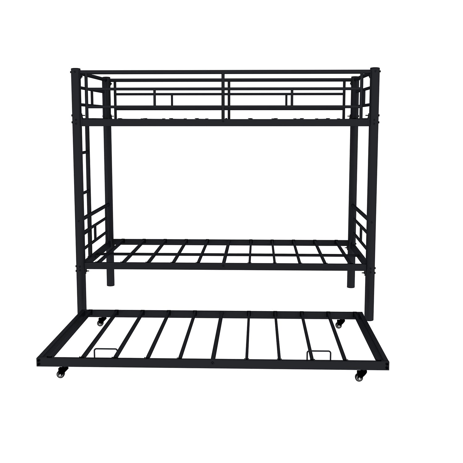 Twin Over Twin Metal Bunk Bed For Kids Boys Girls, Convertible Bedframe With Ladders & Guardrail - Black