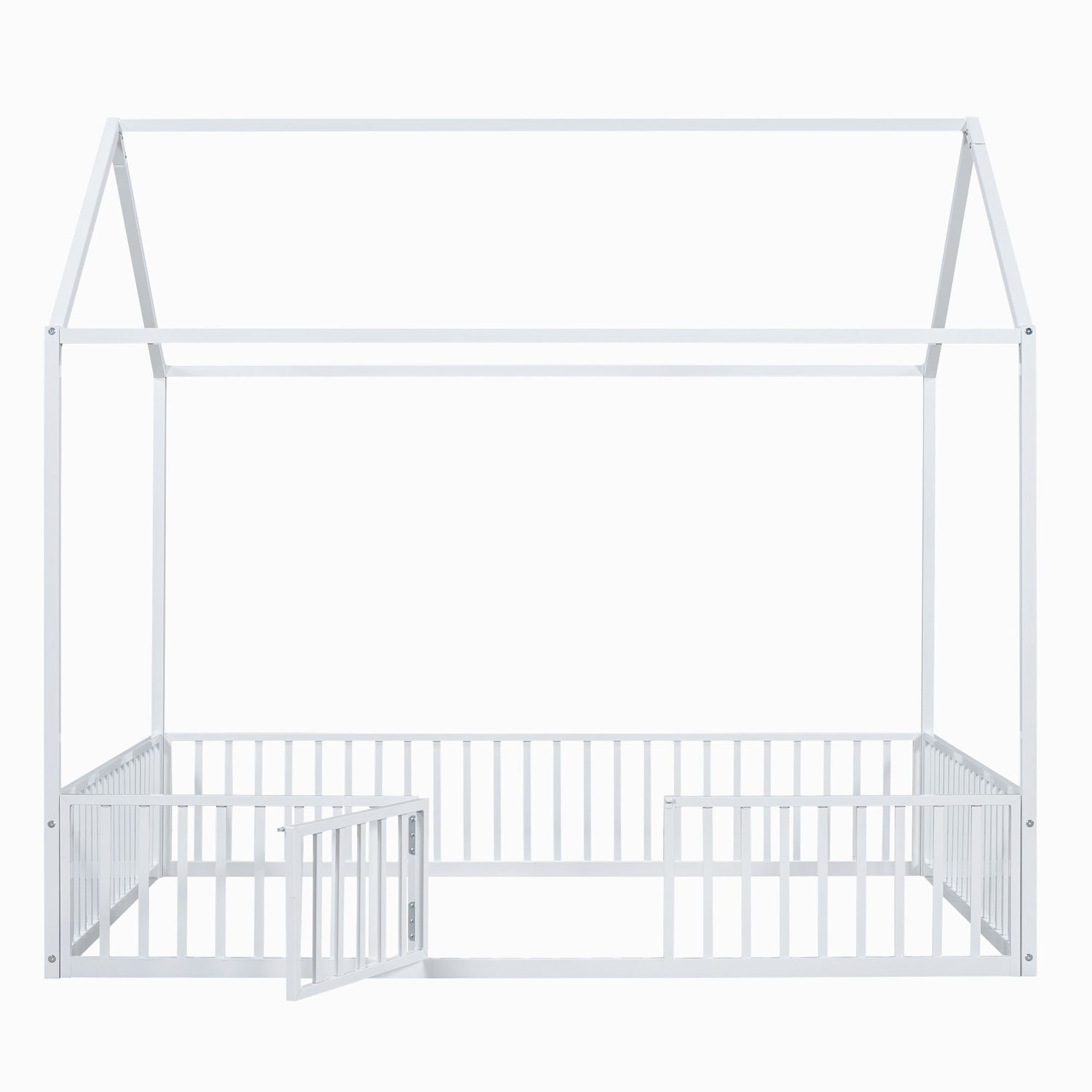 Metal House Bed With Fence And Door - White / Twin is backordered and will ship as soon as it is back in stock.