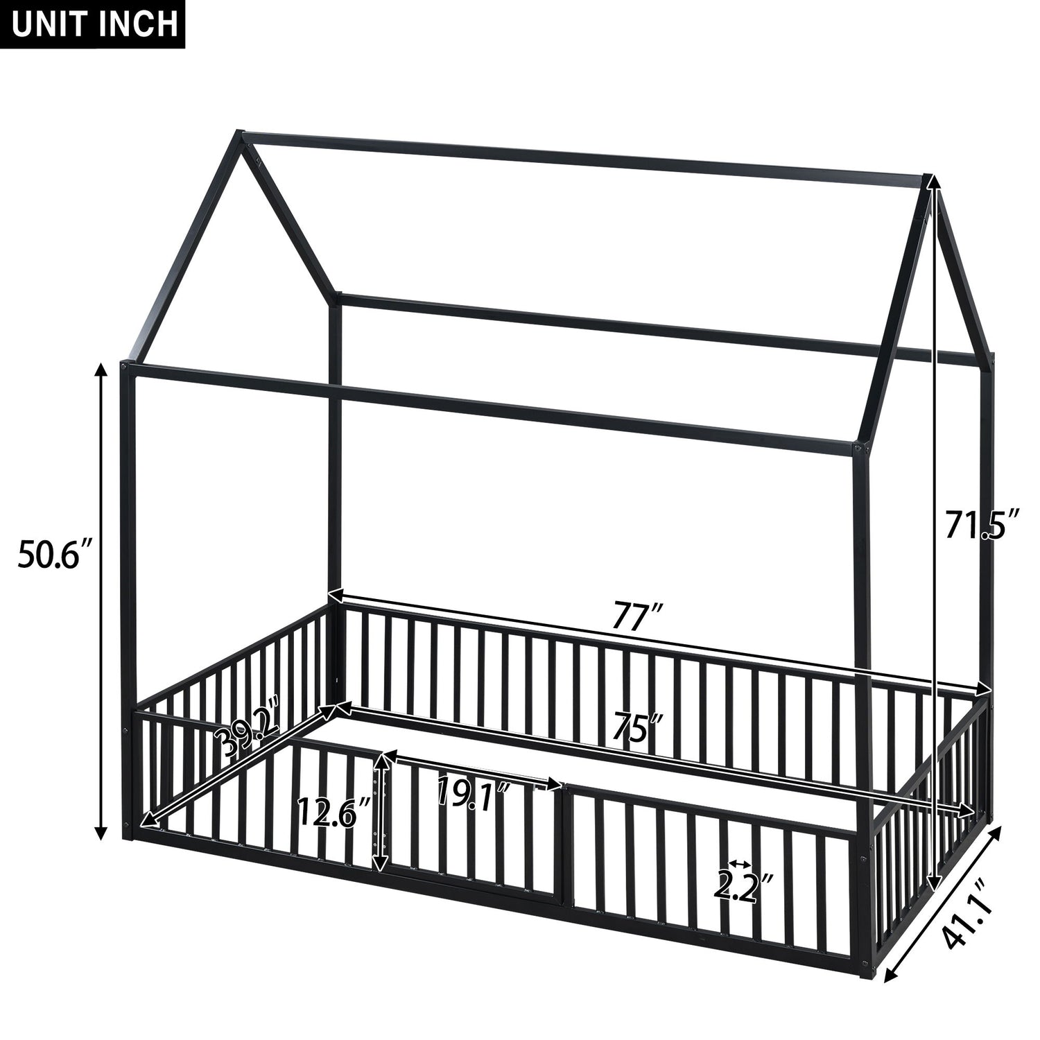 - [House-Shaped Design]: This bed features a classic house shape with a whimsical sky roof, creating a magical bedroom environment.