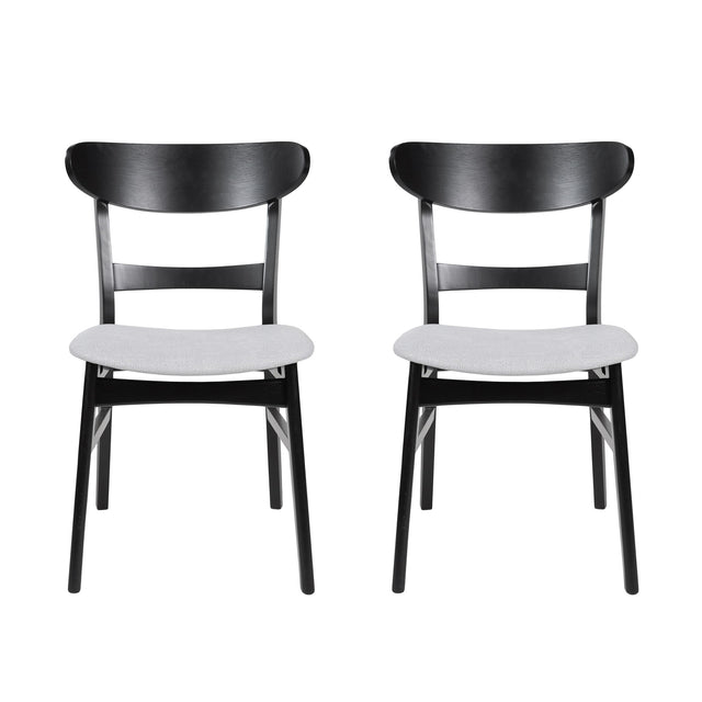 Dining Chair (Set of 2), Mid Century Dining Chairs With Cushioned Seats And Wood Frame - Light Gray / Black