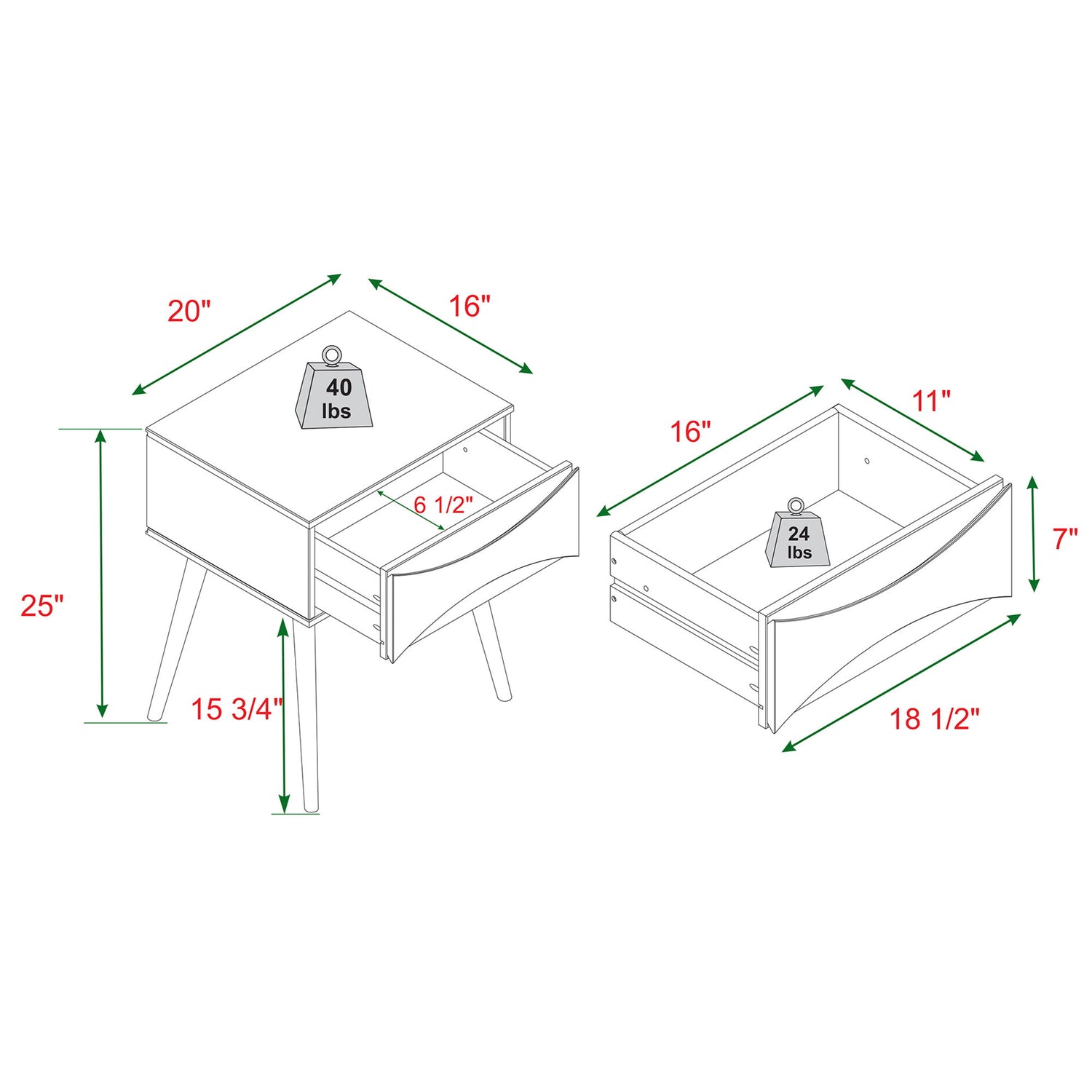 Mid-Century Modern 1 Drawer Solid Wood Nightstand - Walnut
