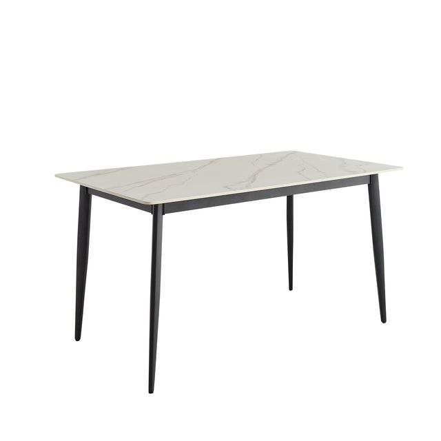 Mid Century Modern Dining Table Round White Sintered Stone Top Heavy Duty Metal Legs Waterproof Surface For Kitchen Dining Room Or Office Furniture - White / Black