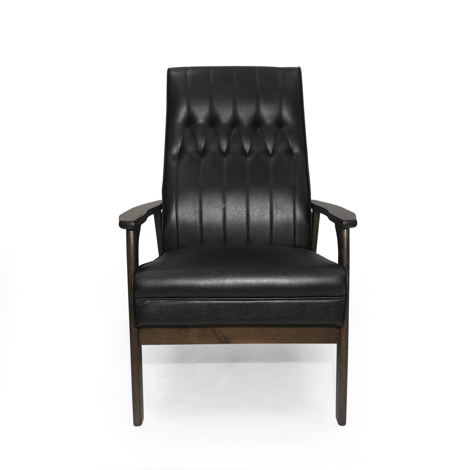 Mid Century Modern Upholstered Accent Chair - Matte Black / Walnut