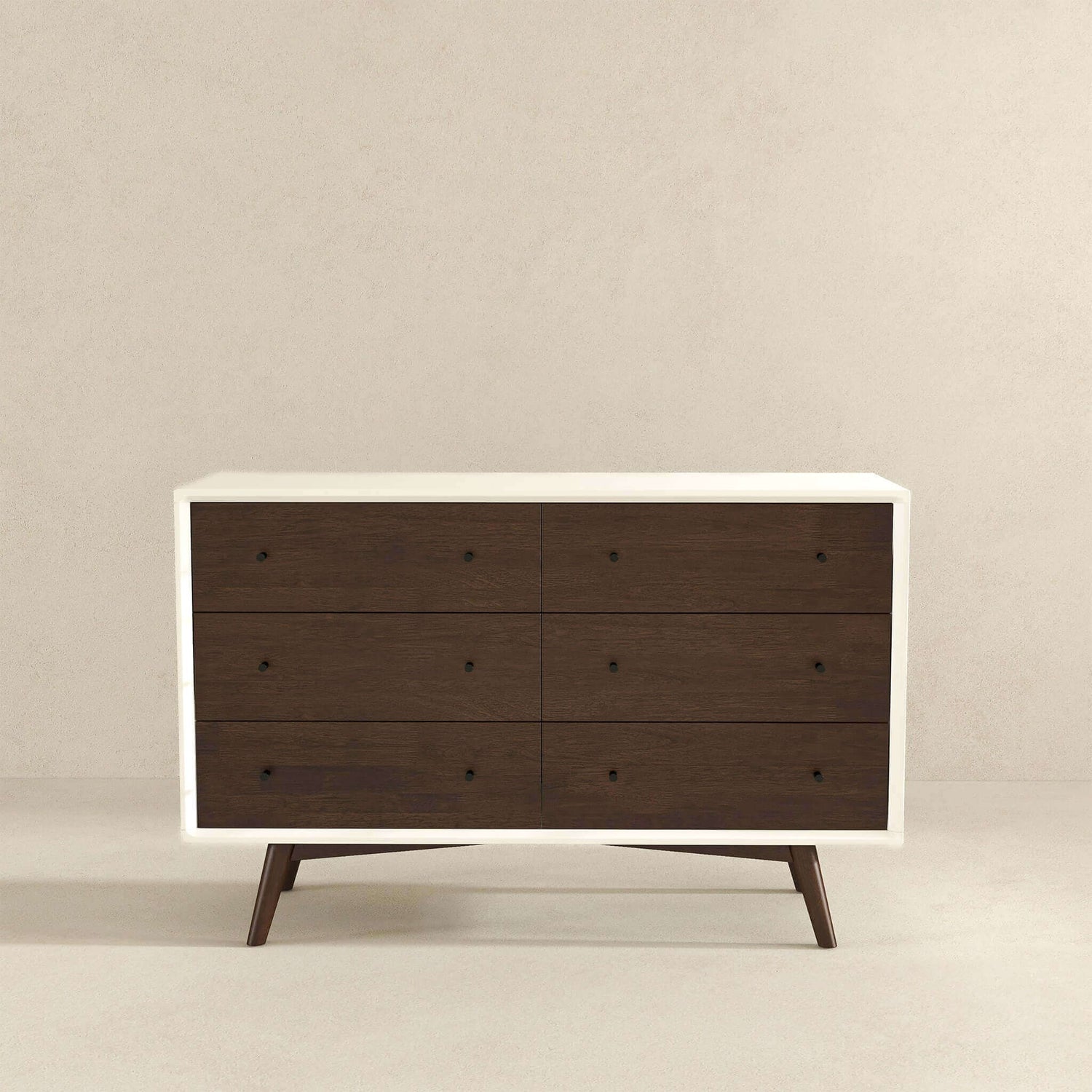 Mid-Century Modern White Dresser 6 Drawer - Dark Brown / White