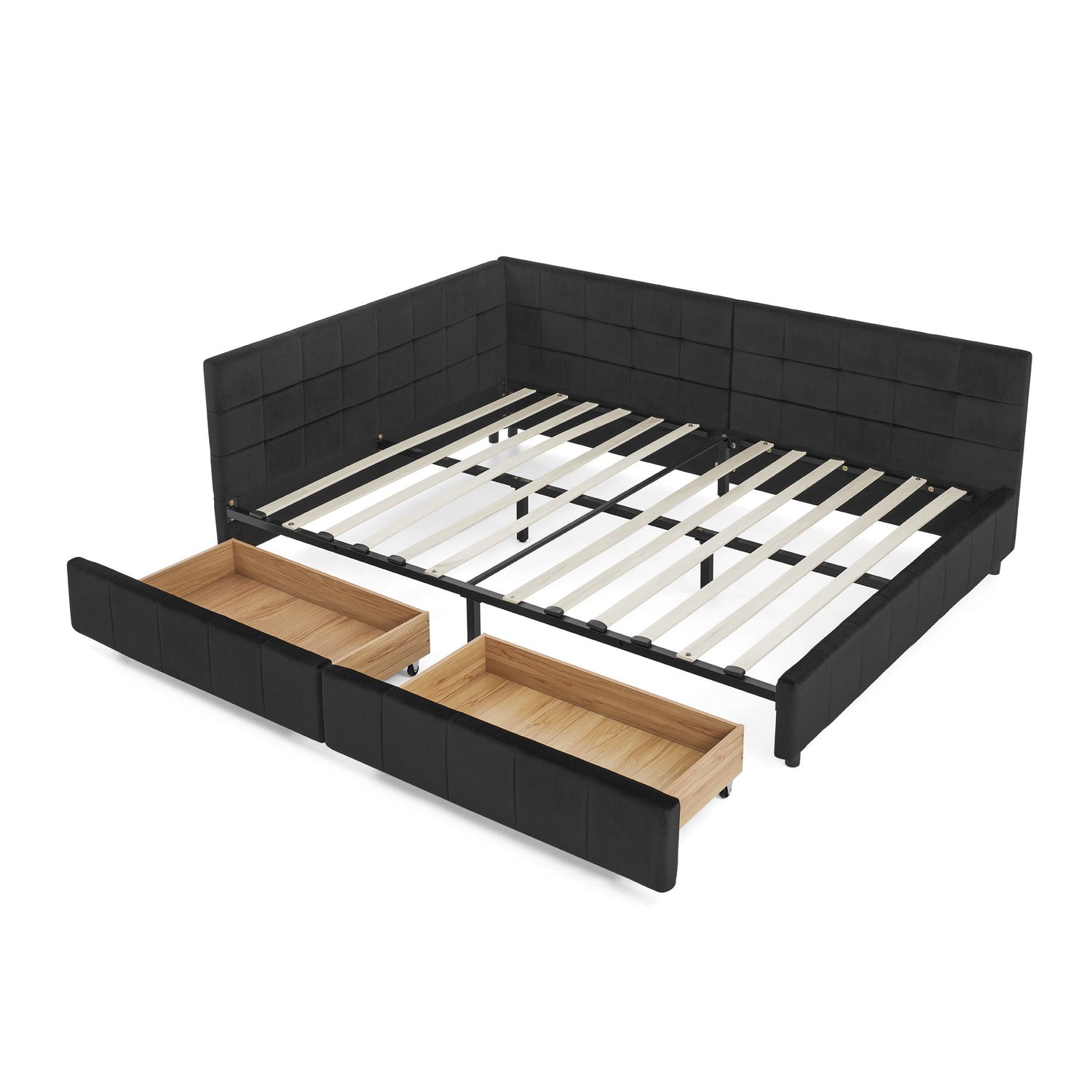 Mid-Century Storage Upholstered Tufted Bed Frame With Backrest And Armrests - Black / Full / None is backordered and will ship as soon as it is back in stock.