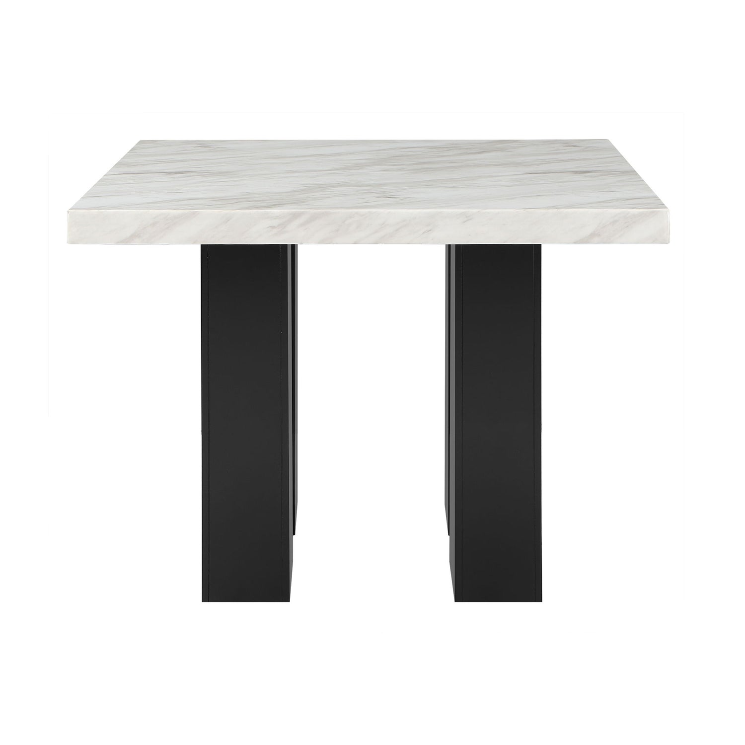 - Elegant Design: This bar table features a sophisticated faux marble top paired with a contrasting double pedestal base, adding a chic and modern touch to any space.