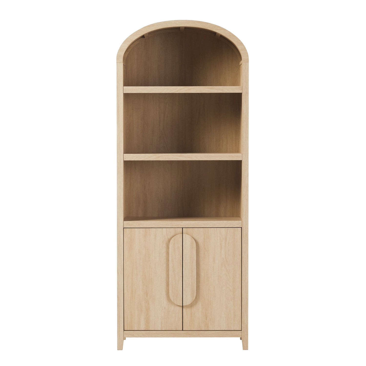 Modern 3 Shelf Open Arched Bookcase Cabinet - Oak