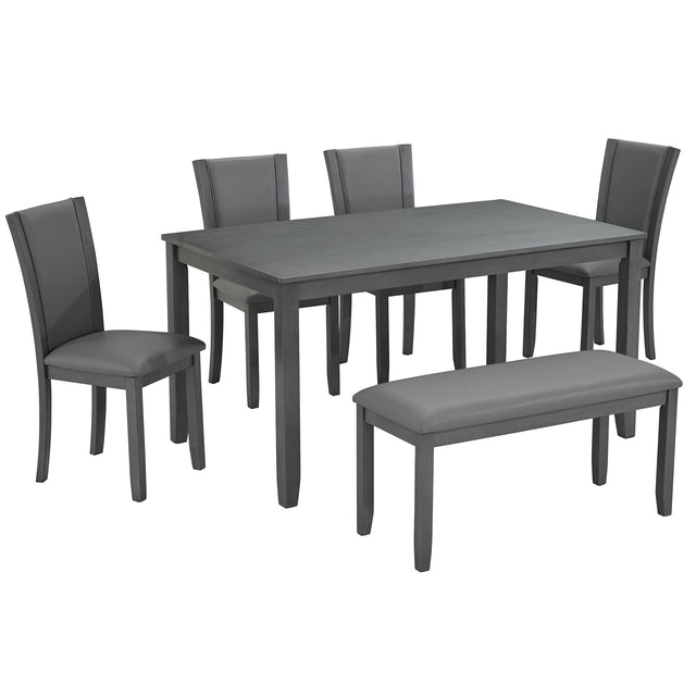 Modern 6 Piece Dining Table Set With Bench And Chairs For Dining Room Or Kitchen - Gray