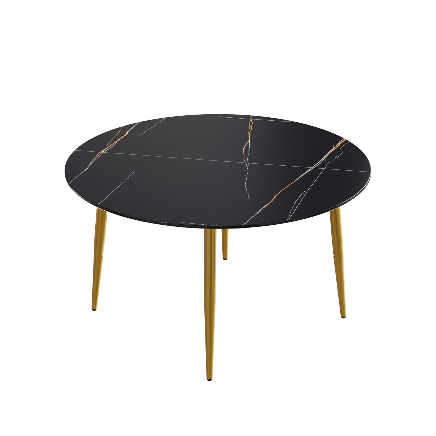 Modern Artificial Stone Round Dining Table With Golden Metal Legs, Can Accommodate 6 People - Black