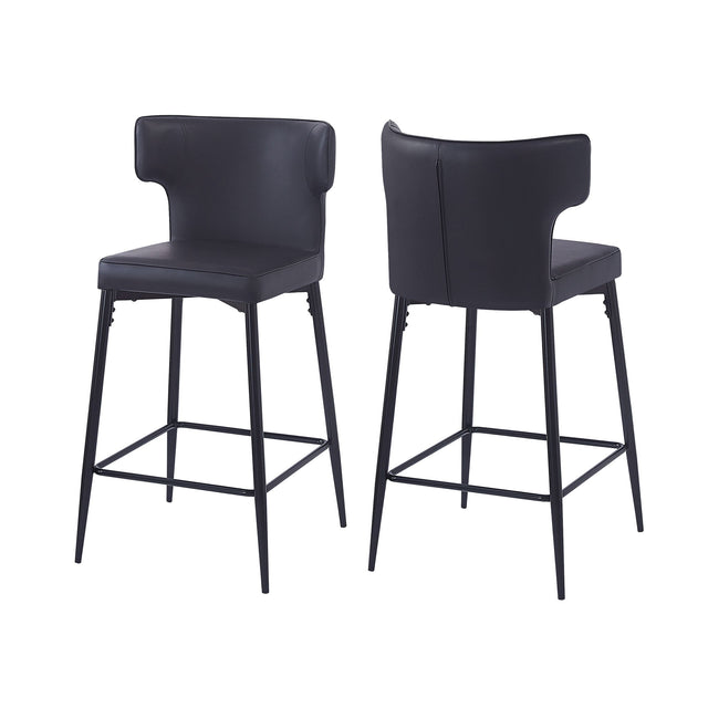 Modern Bar Stools (Set of 2) With Upholstery And Metal Footrest, 28" Counter Height - Black