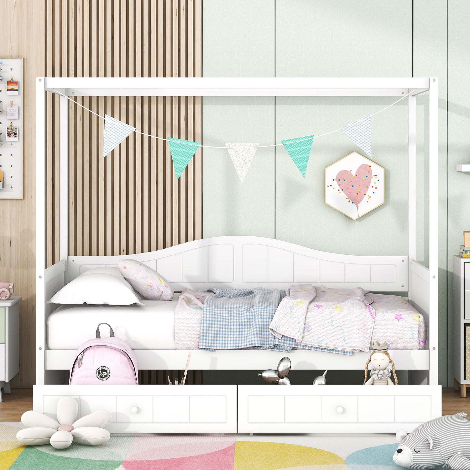 Twin Size Canopy Day Bed With 2 Drawers - White