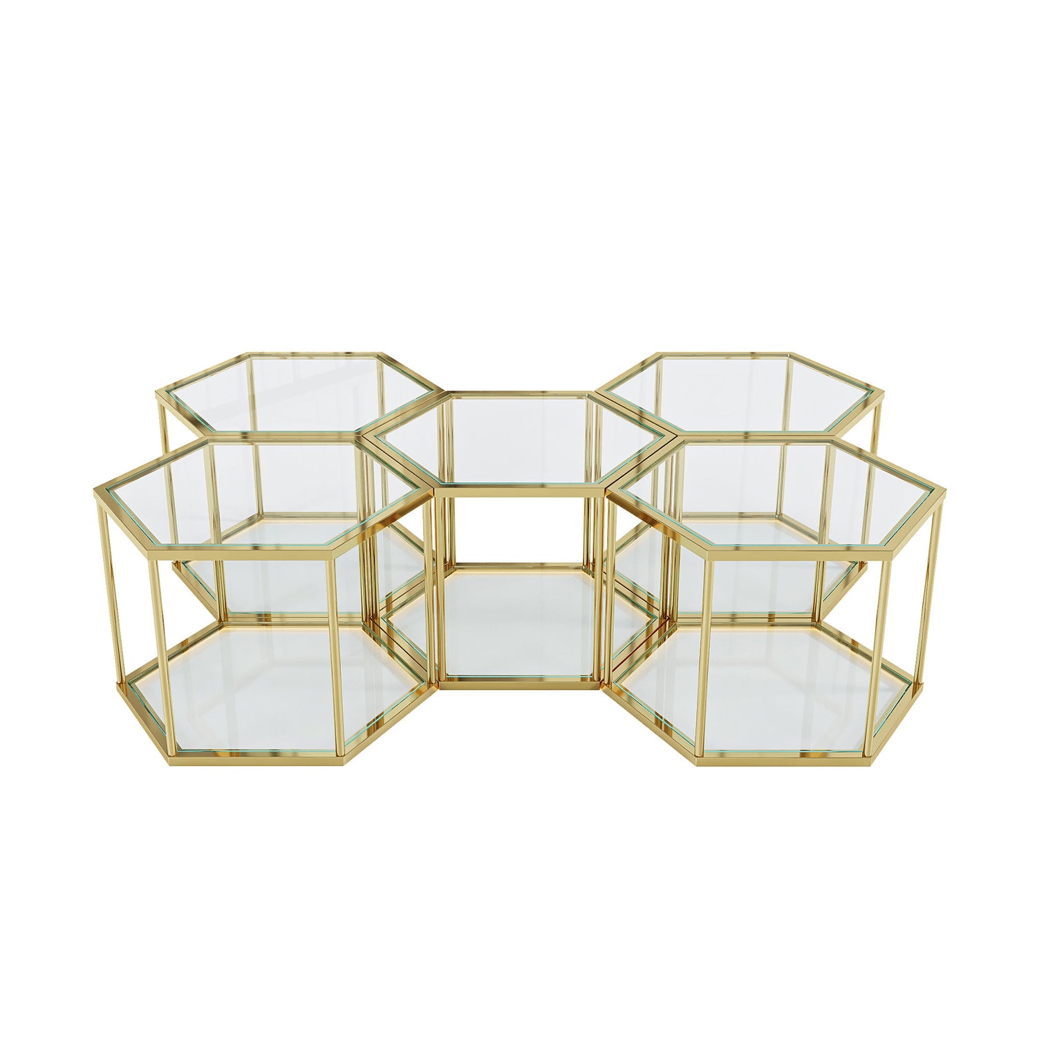 Modern Stainless Steel Coffee Table With Double Layer Glass And Polygonal Design - Gold