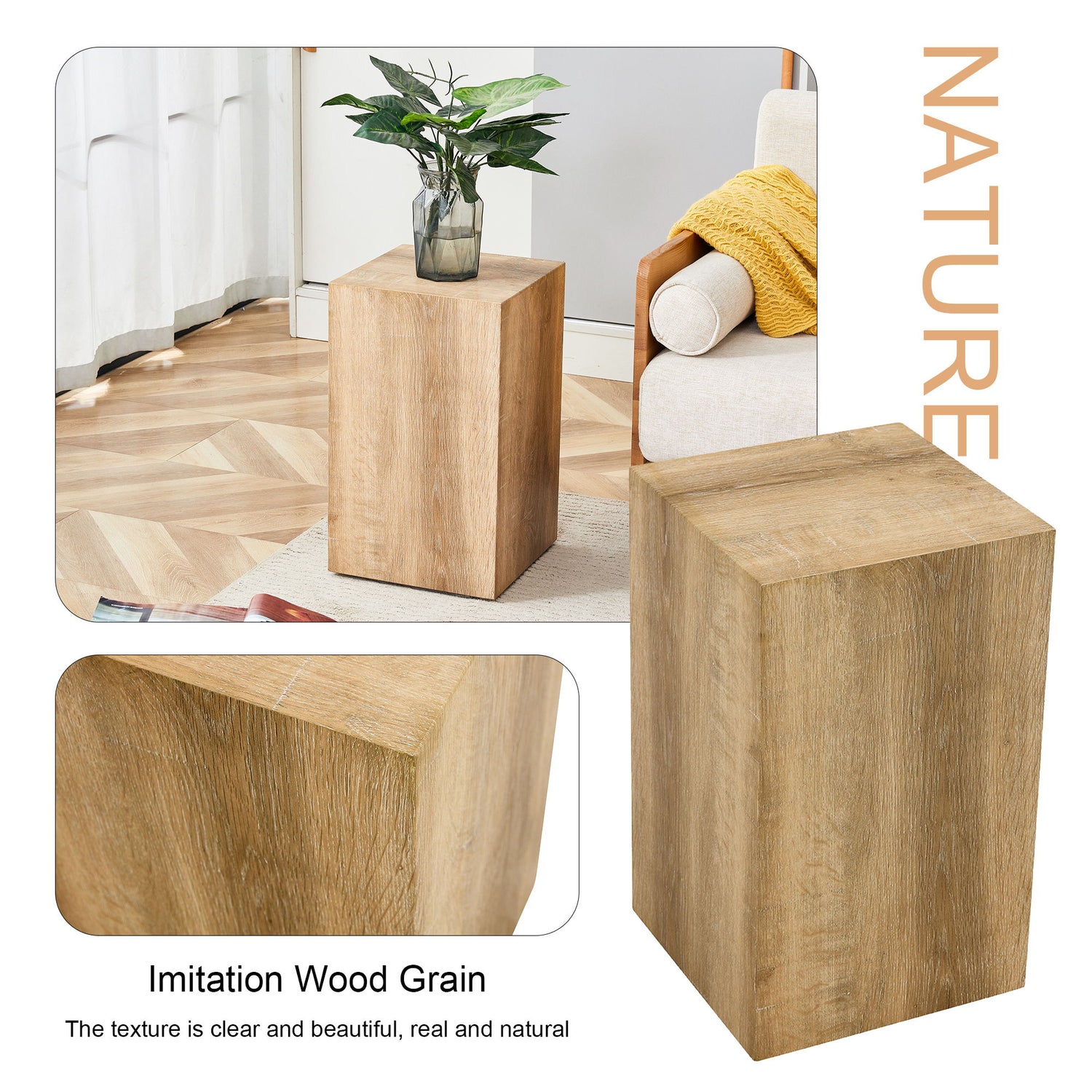 - Natural Wood Grain: The coffee table is covered with a natural wood grain sticker, featuring a clear texture that brings a natural and warm atmosphere to your living room.