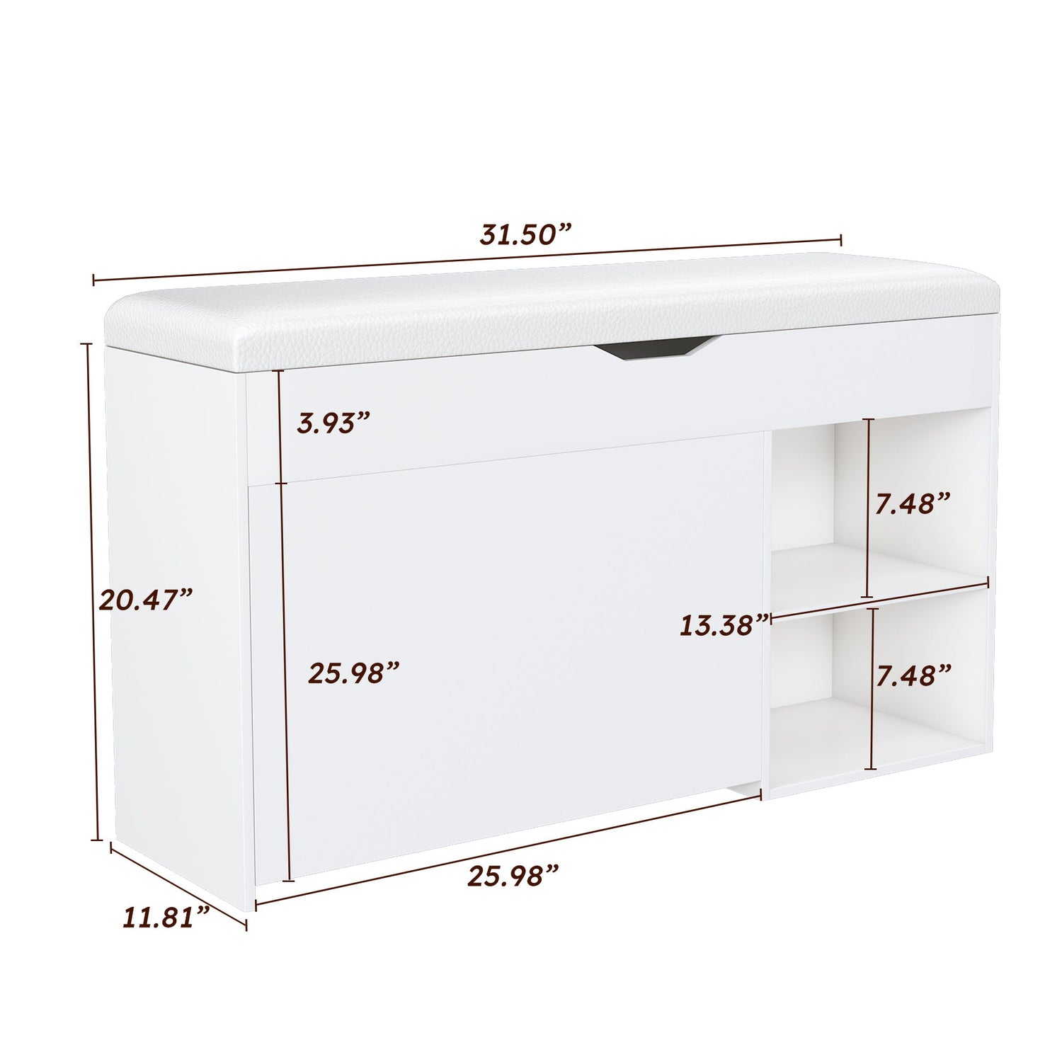 Modern Design Entryway Bench With Adjustable 3 Tier Flip-Up Drawers And Hidden Cabinet - White