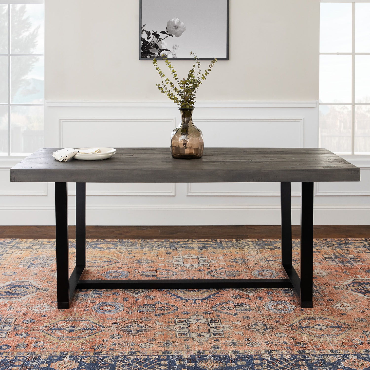 Modern Distressed Solid Wood And Metal Open Frame Dining Table - Gray