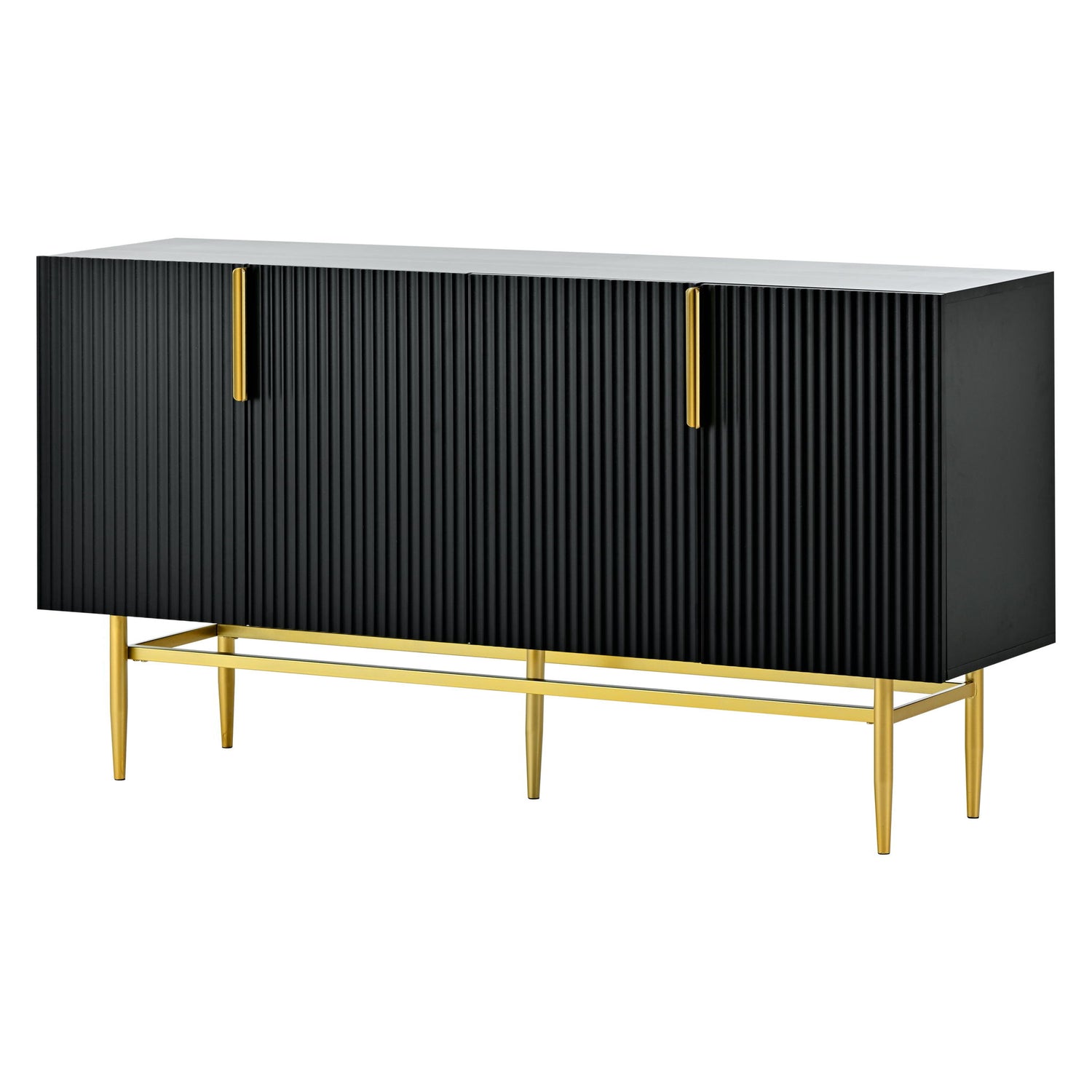 Modern Elegant 4 Door Sideboard Gold Metal Handle Buffet Cabinet For Dining Room, Living Room, Bedroom, Hallway - Black