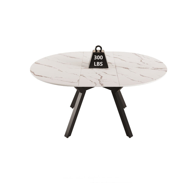 Modern Extendable White Circular Dining Table with MDF Top and Metal Legs for 4-6 Persons - White is backordered and will ship as soon as it is back in stock.