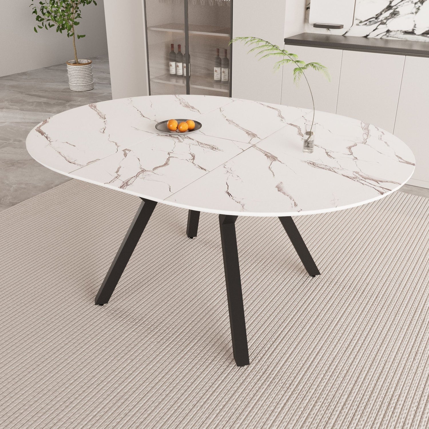 Modern Extendable White Circular Dining Table with MDF Top and Metal Legs for 4-6 Persons