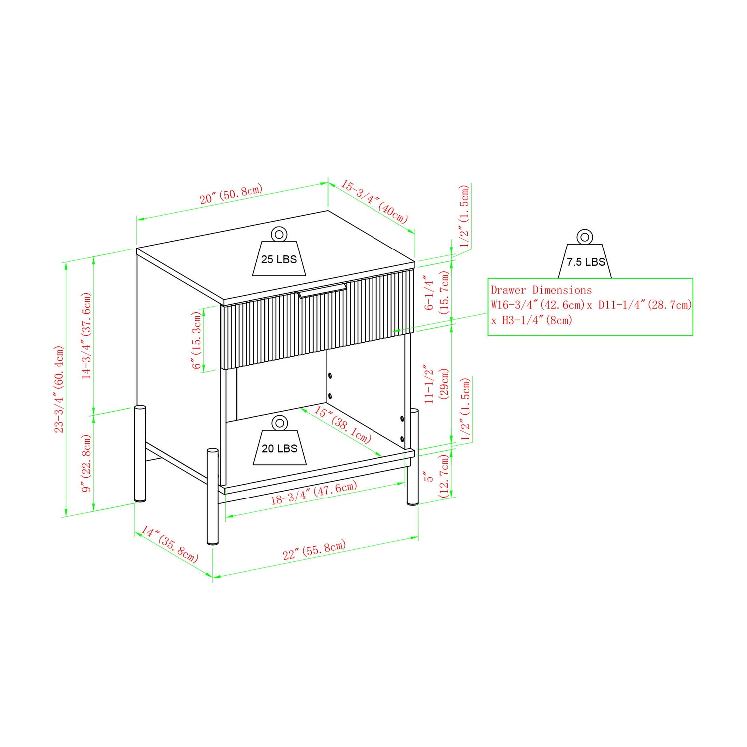 22.0"W x 15.75"D x 24.0"H - 40.0 lb