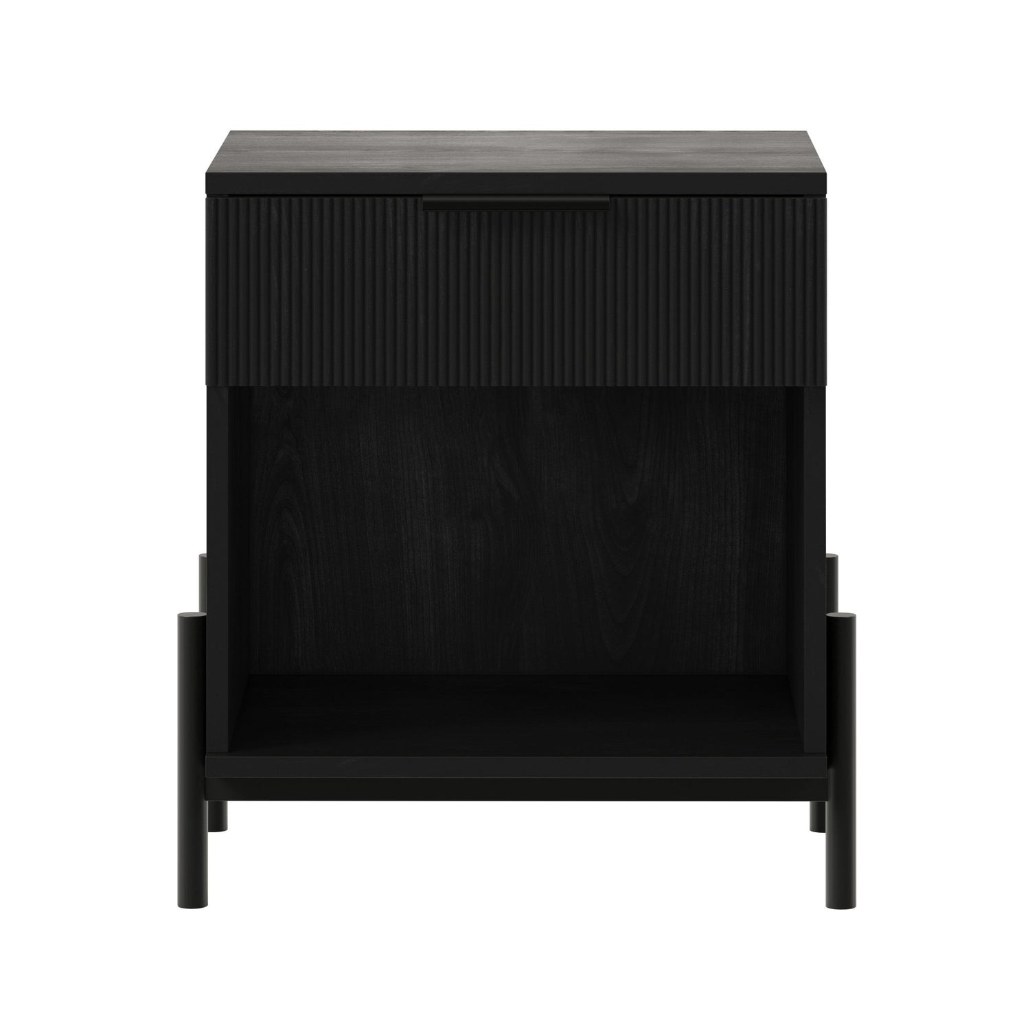 Modern Fluted Drawer Nightstand With Open Cubby - Black