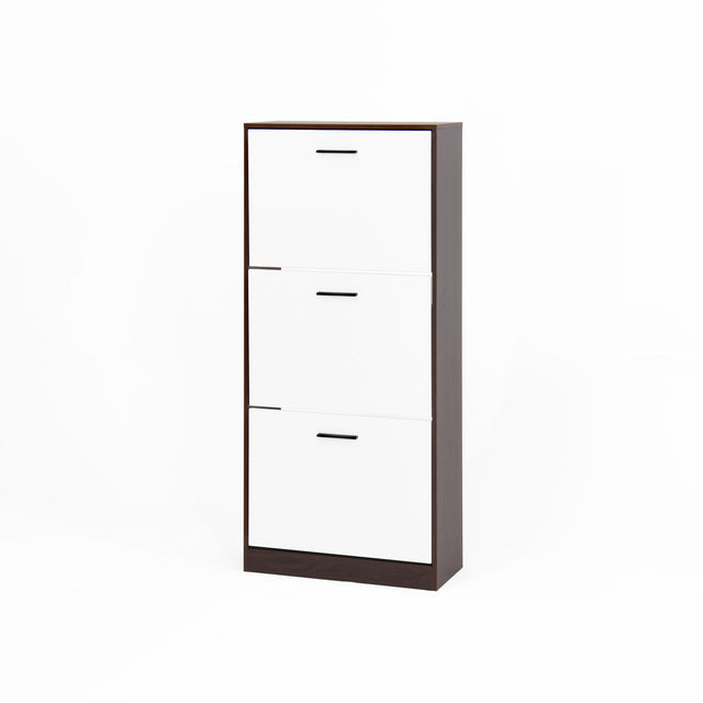 Modern Freestanding Shoe Storage Cabinet With 3 Flip Drawers - White / Walnut