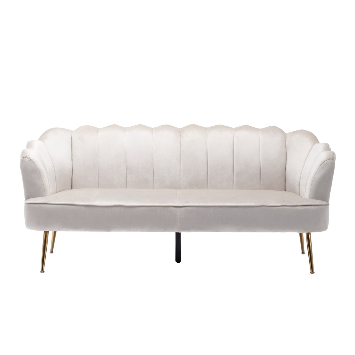 Modern Glam 3 Seater Sofa With Velvet / Gold Iron Legs - Natural