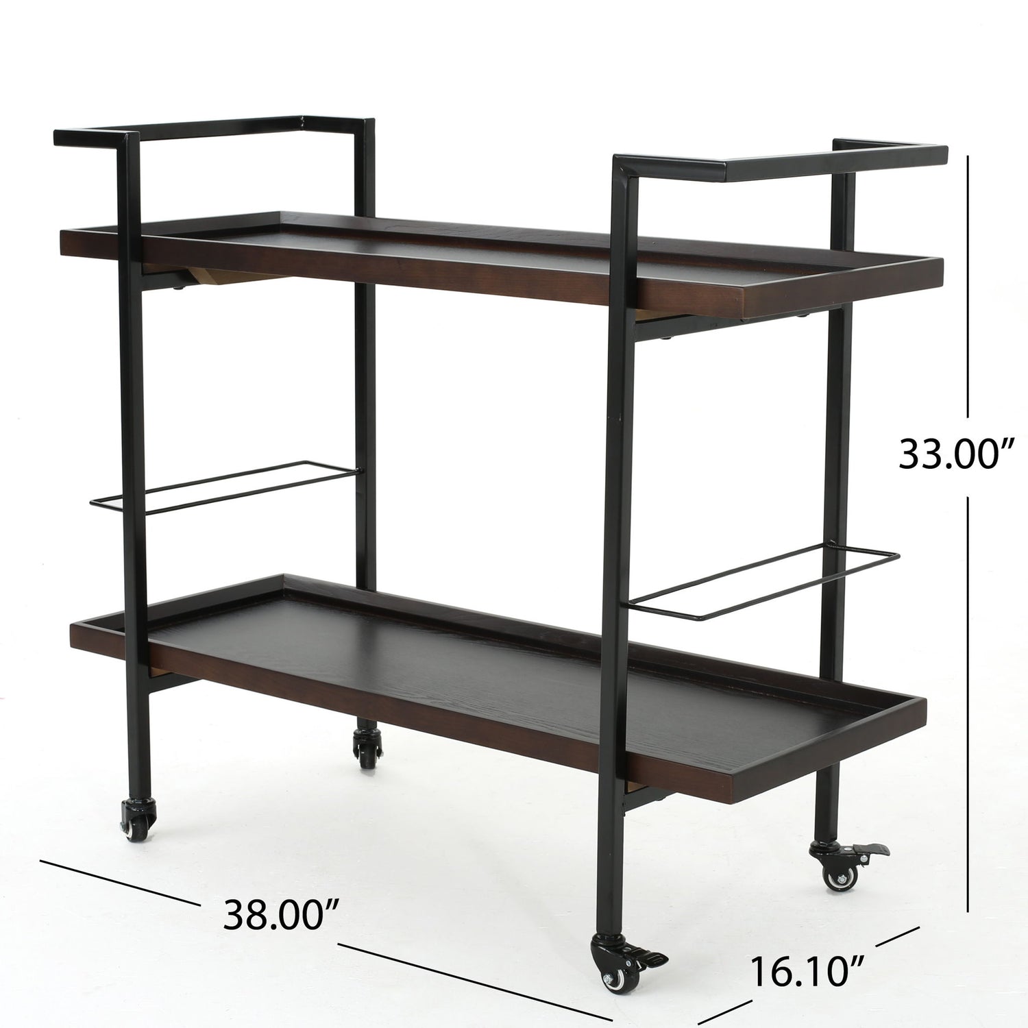 Modern Industrial Bar Cart With Shelving And Rolling Casters - Walnut