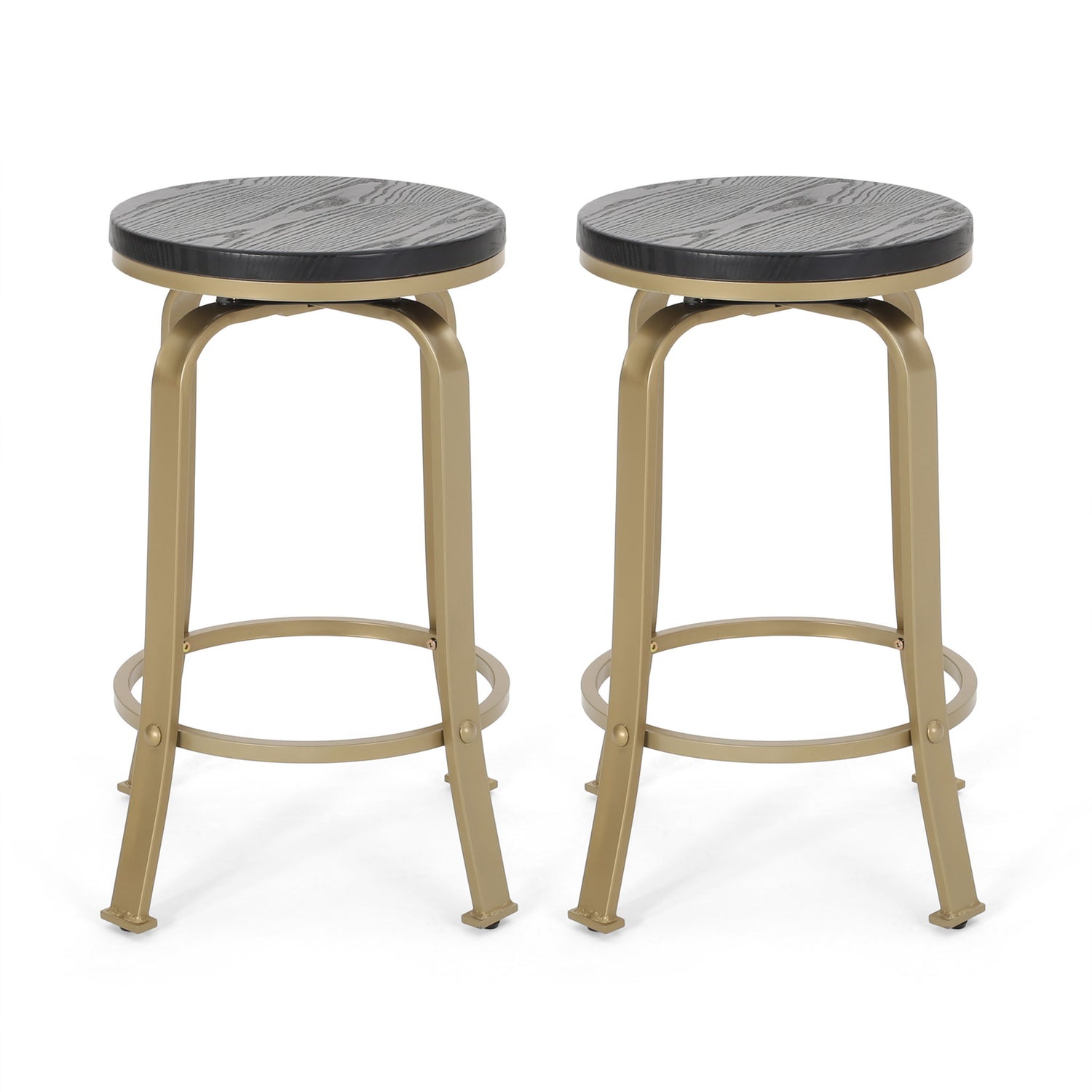 Modern Industrial Counter Stool Set With Swivel Function, 2 Pieces - Black / Gold