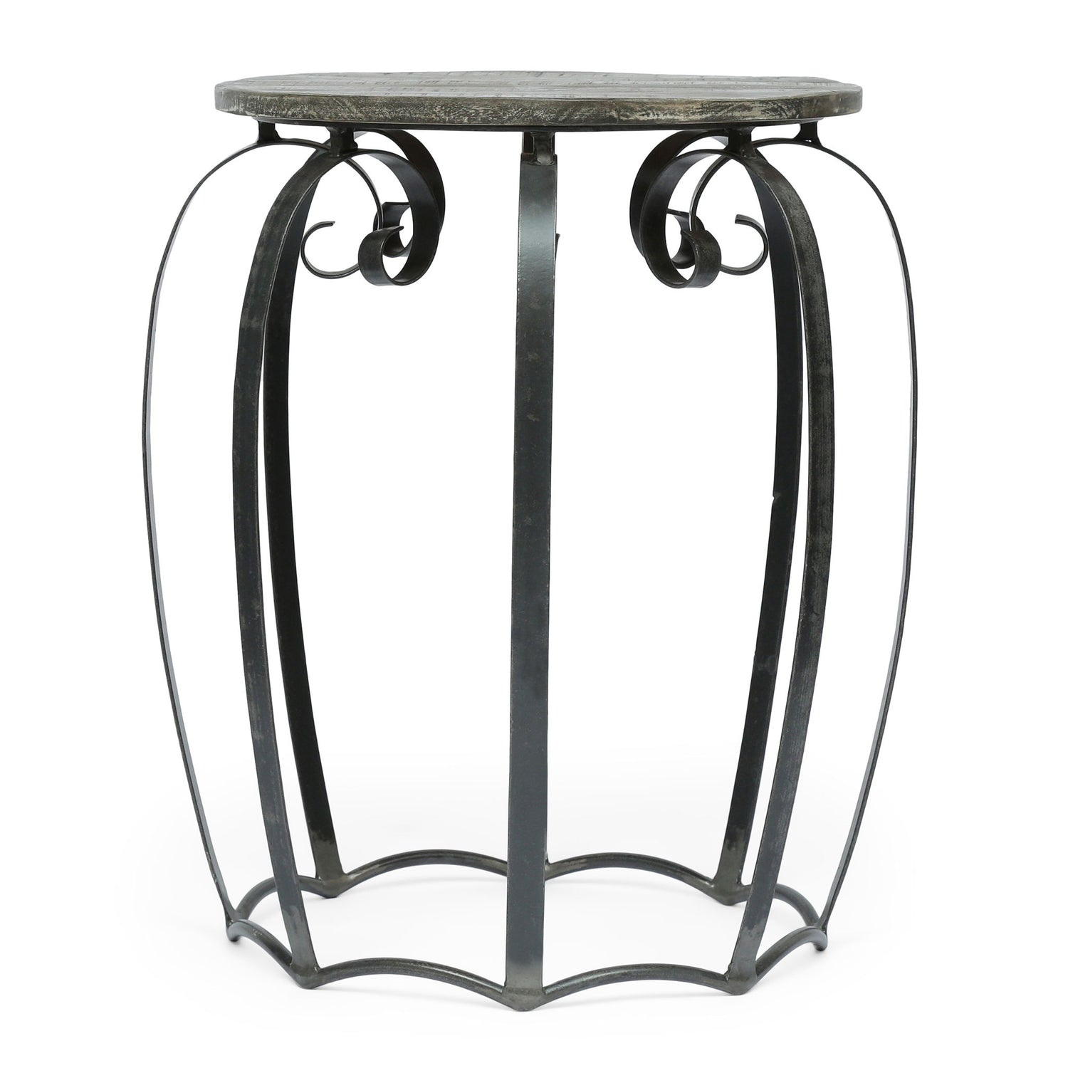 Modern Industrial End Table With Mango Wood Top And Iron Frame - Gray
