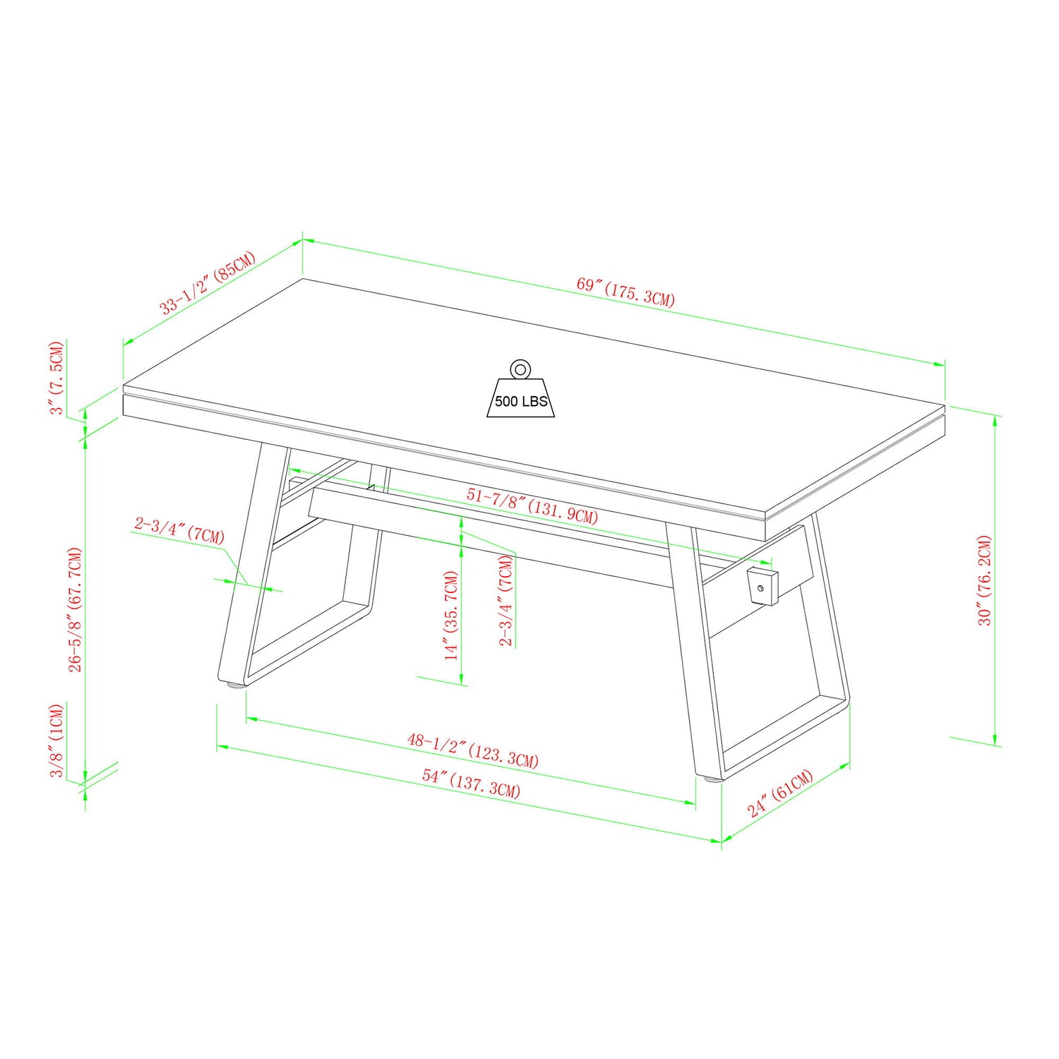 69.0"W x 33.5"D x 30.0"H - 94.0 lb
