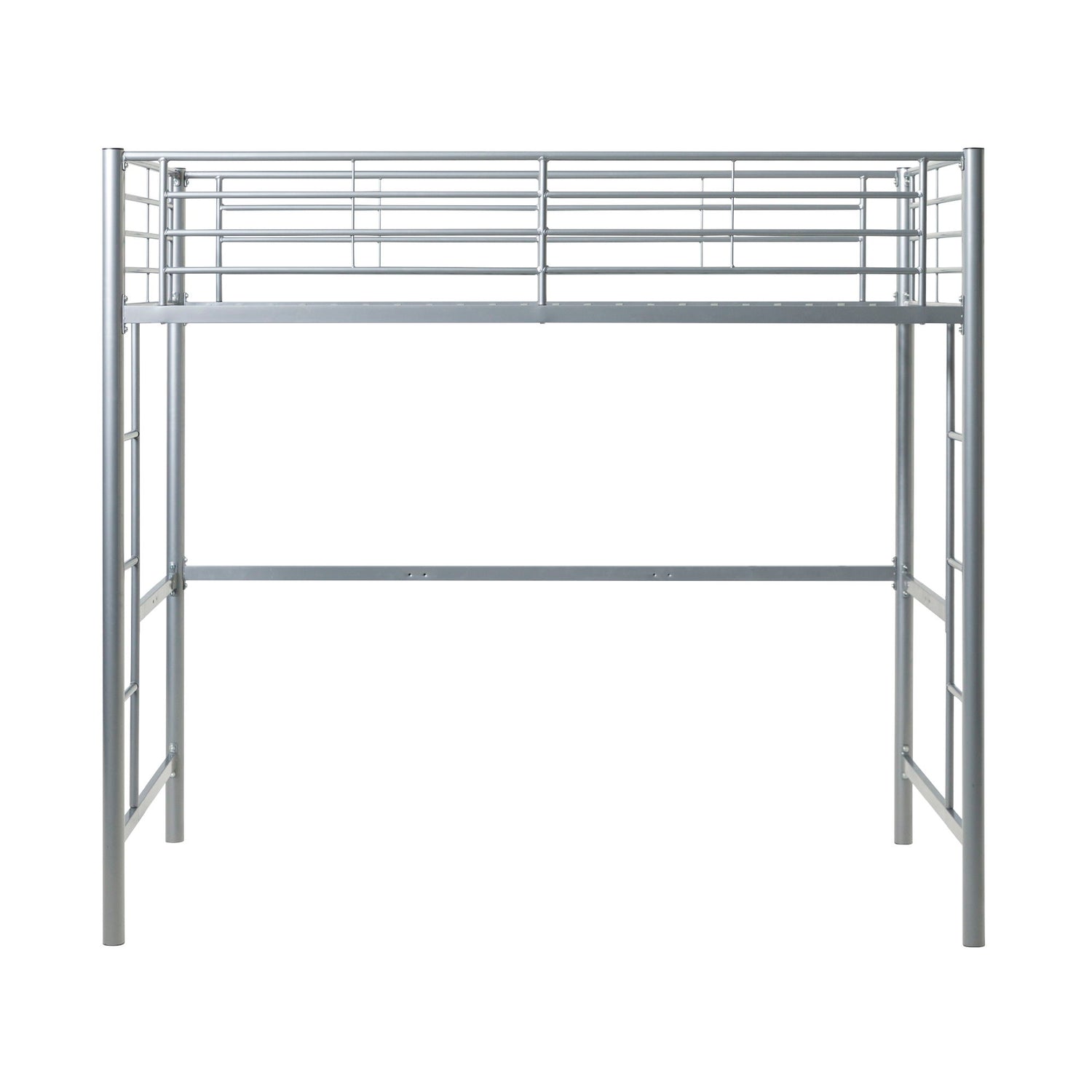 Modern Industrial Twin Over Loft Metal Bunk Bed Frame With Integrated Guardrails - Silver is backordered and will ship as soon as it is back in stock.