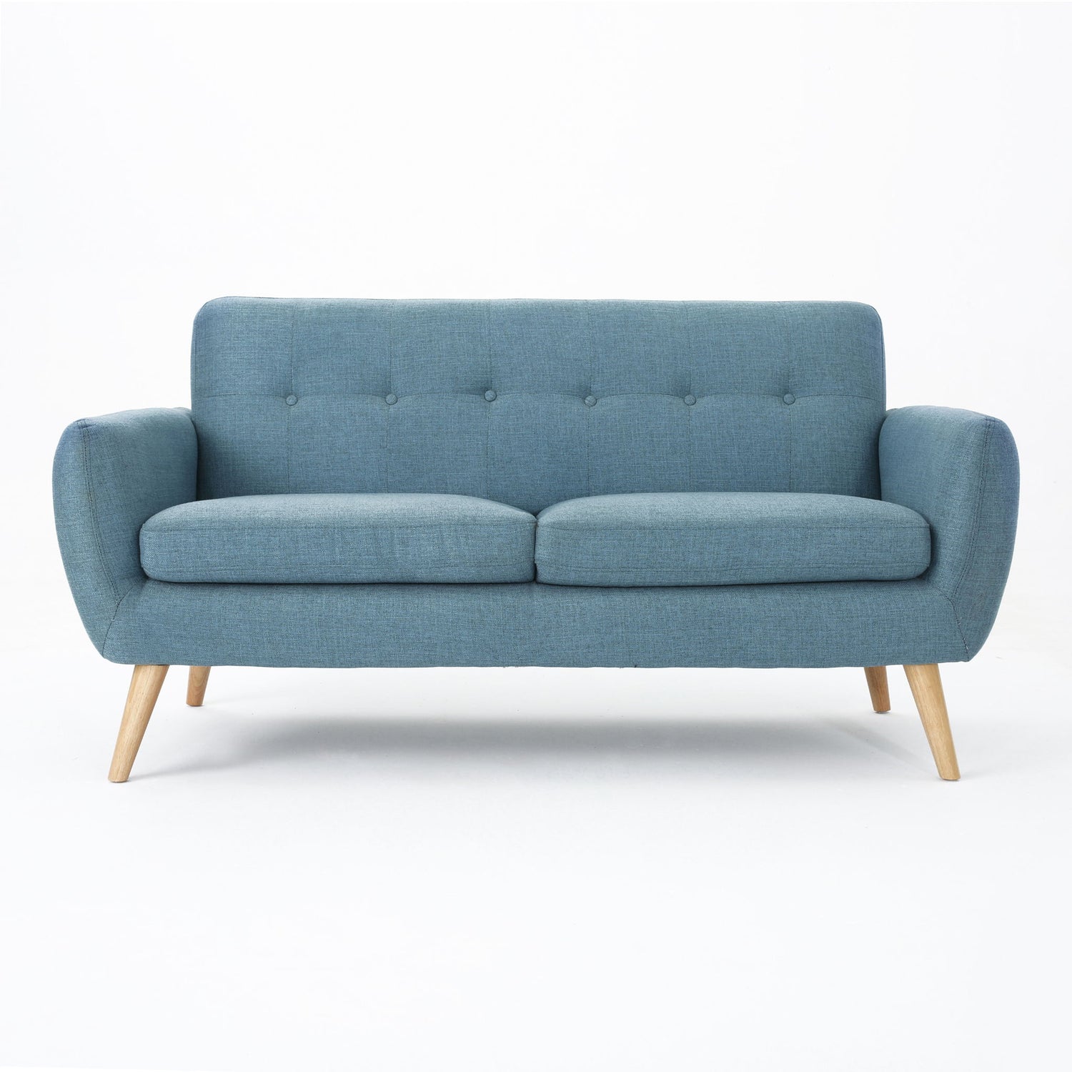 Mid Century Modern Loveseat Sofa With Button Tufted Backrest - Blue