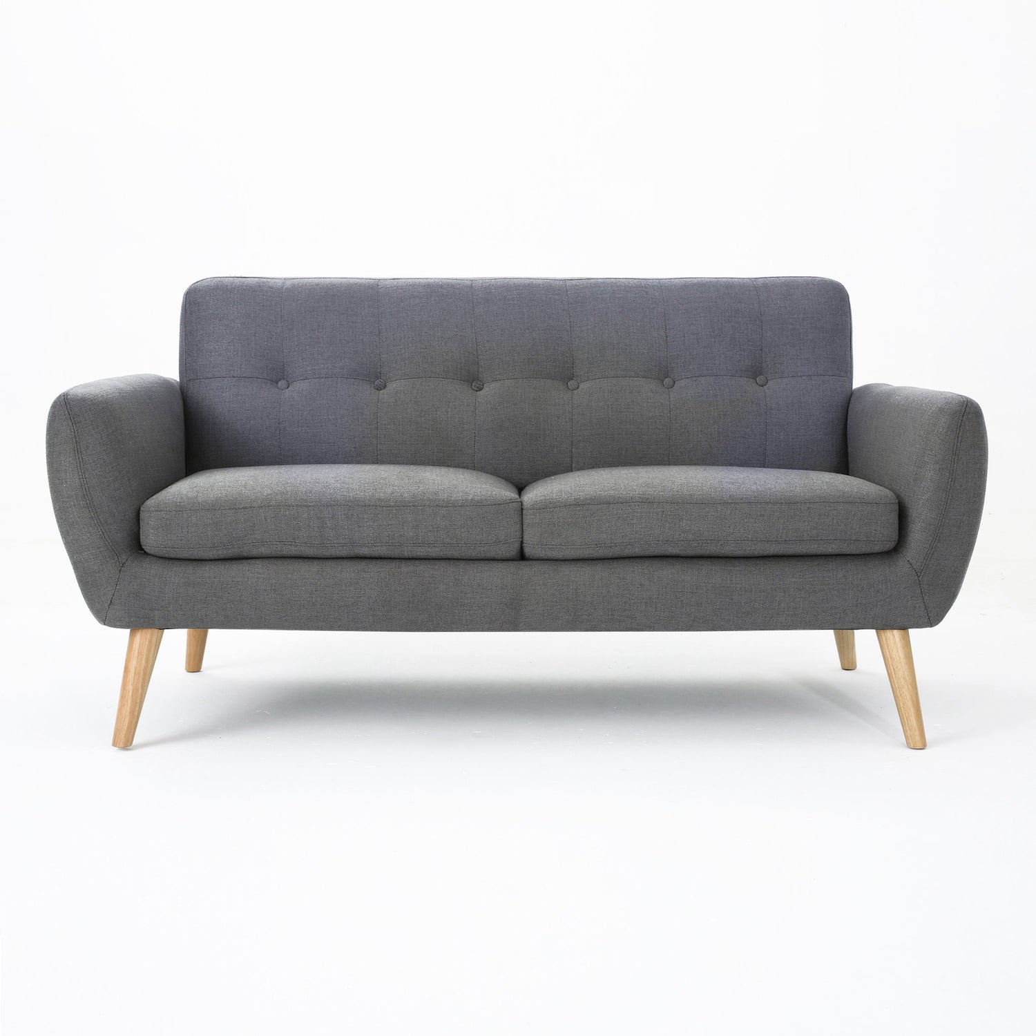 Mid Century Modern Loveseat Sofa With Button Tufted Backrest - Dark Gray