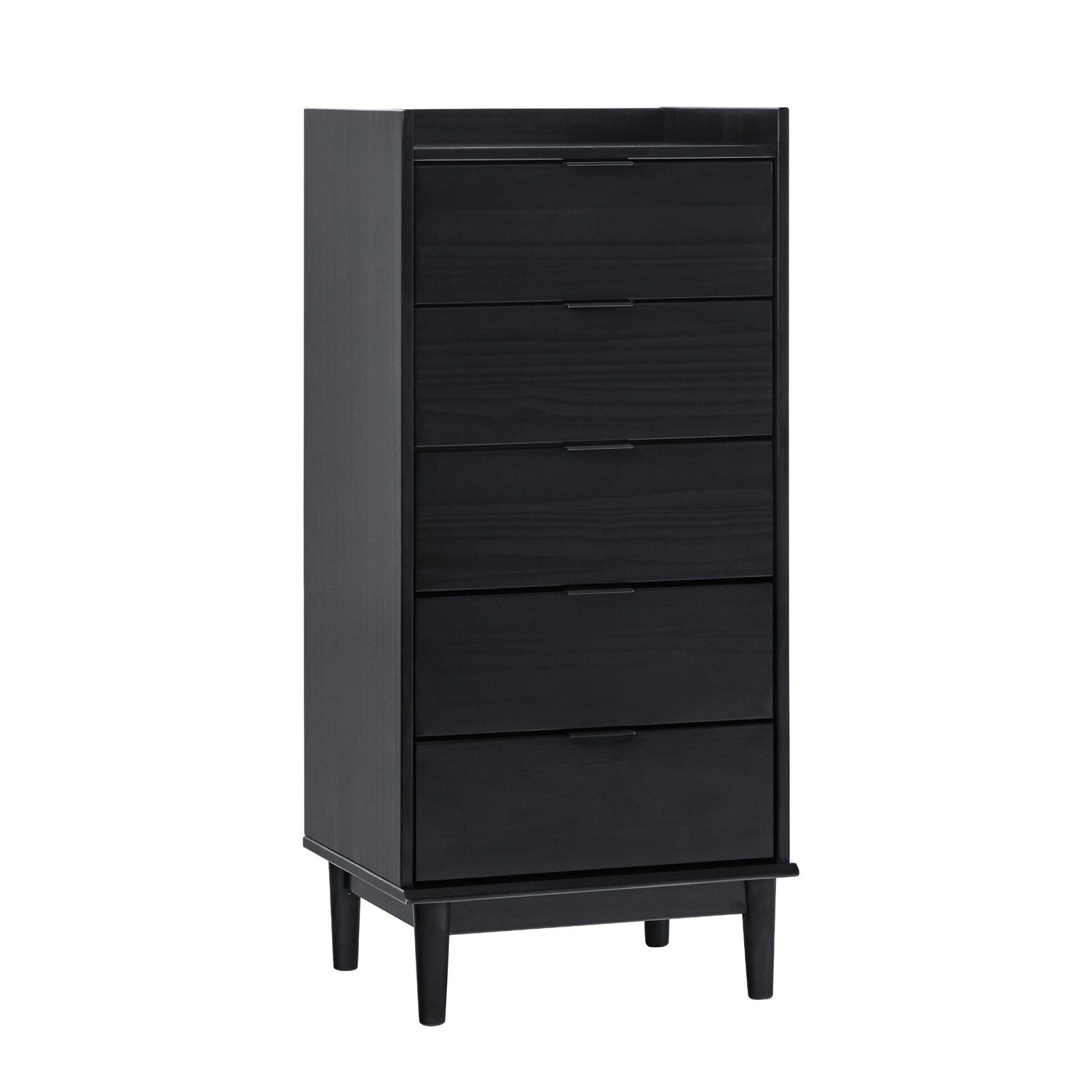 Modern Minimalist 5 Drawer Gallery Top Dresser - Black