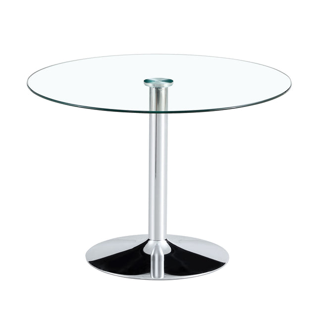 Modern Minimalist Circular Dining Table With Glass Top And Electroplated Metal Legs For Restaurants And Living Rooms - Silver / Transparent