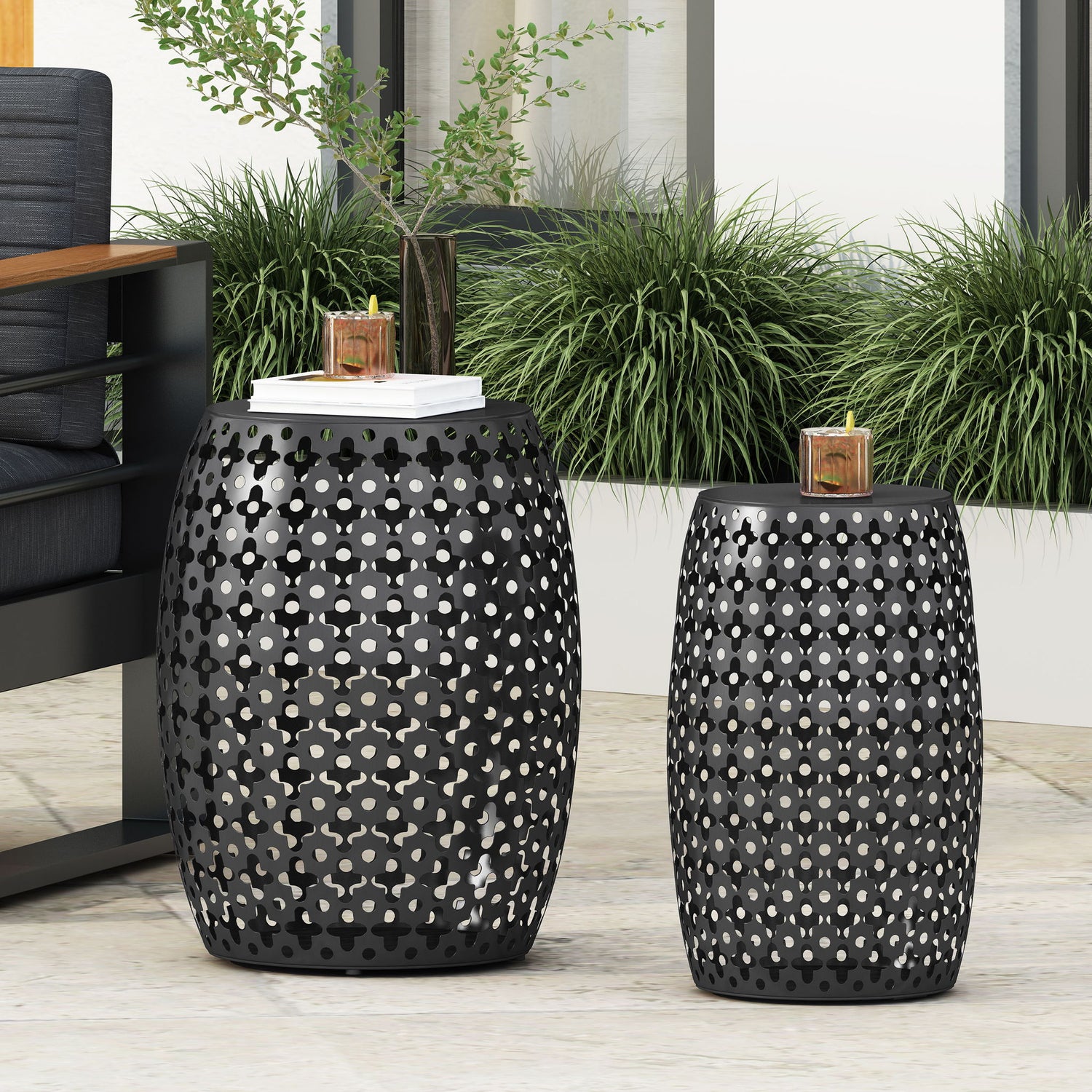 Modern Outdoor Metal End Table Set With Durable Iron Frame - Black