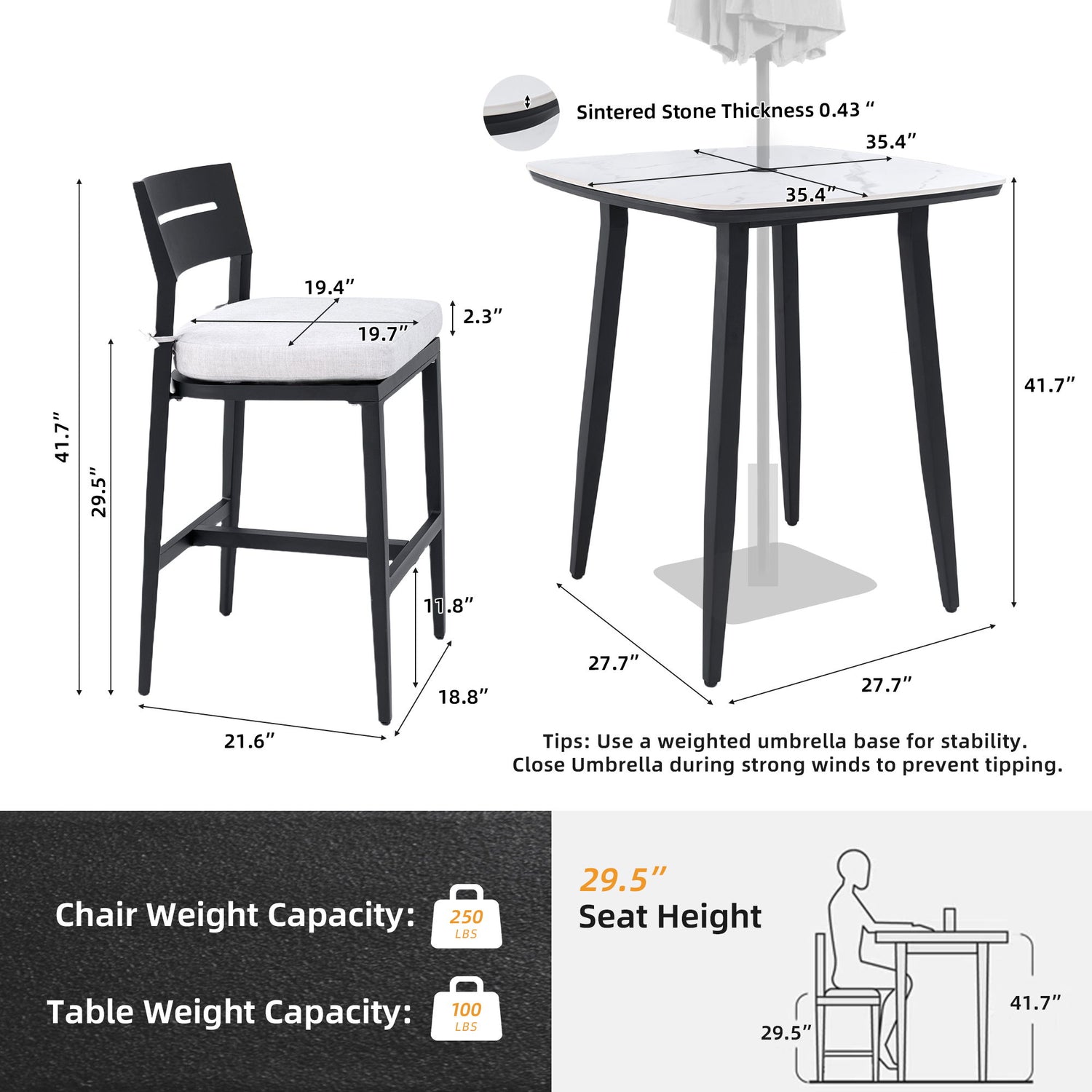 - Modern Bar Set: Includes sintered stone bar table and four matching stools; perfect for patios, balconies, and poolside