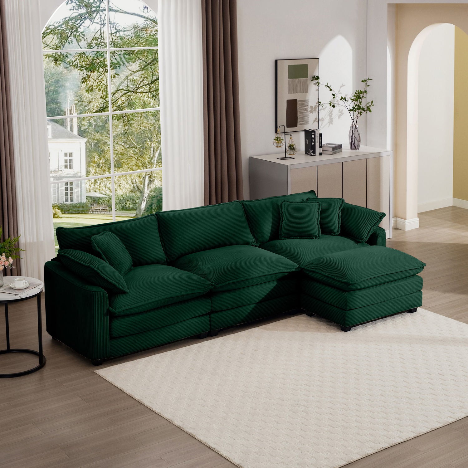 Modern Oversized Modular Cushion Sofa With Ottoman, Low Back, Deep Seating Sofa Set