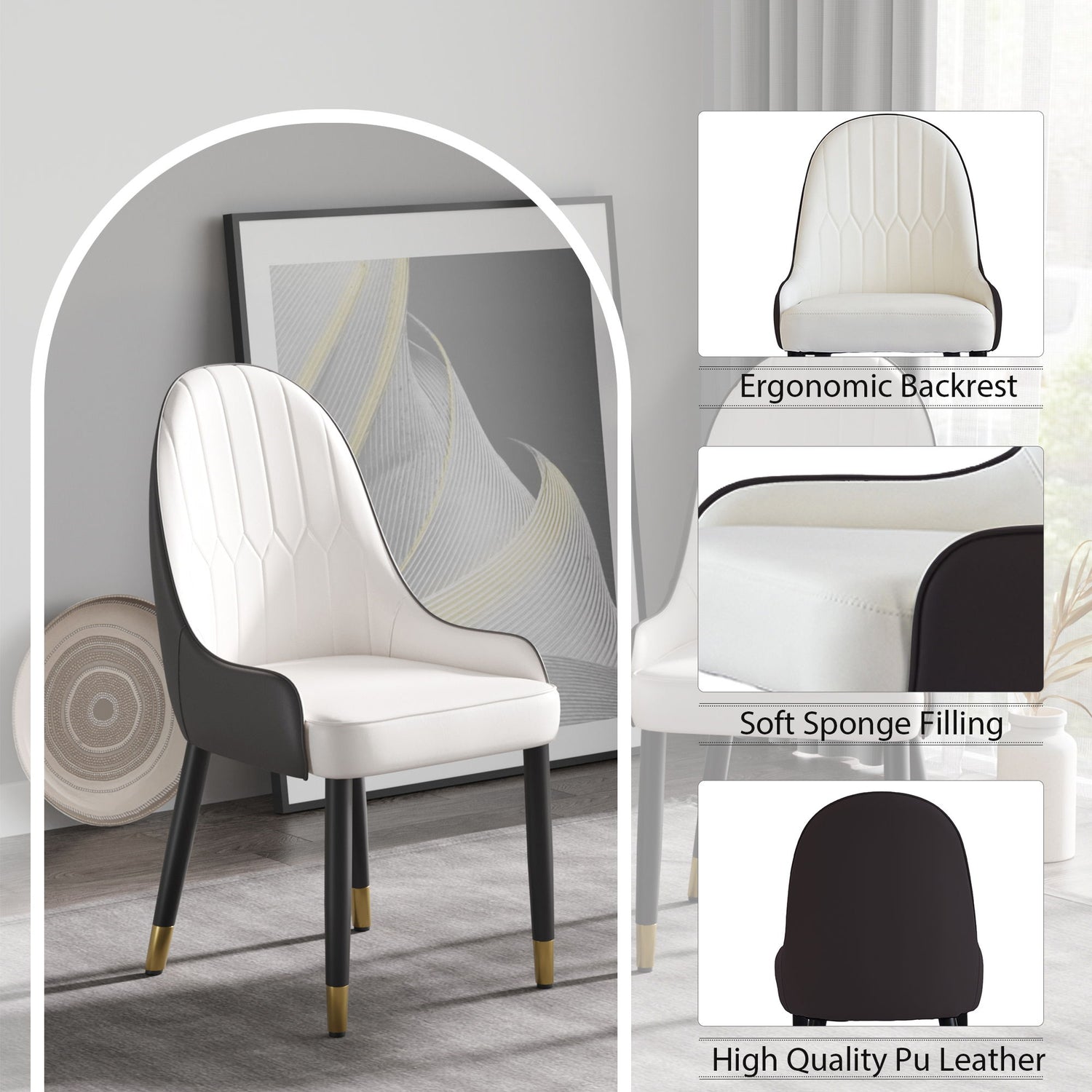 Modern PU Sponge-Filled Dining Chair, Solid Wood Metal Legs, Suitable For Restaurants, Living Rooms And Rooms (Set of 2)