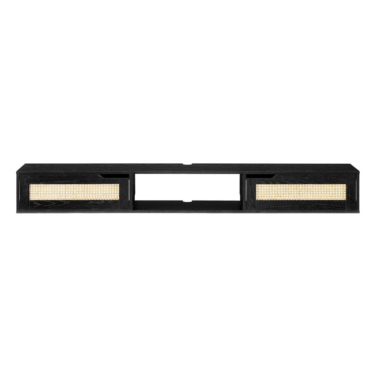Modern Rattan Door Floating TV Stand For TVs Up To 80" - Black