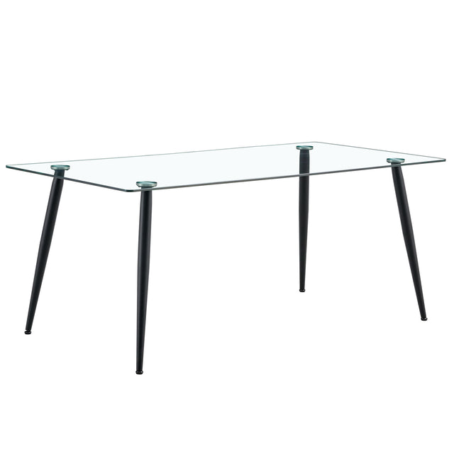 Modern Rectangular Glass Dining Table With Tempered Glass Top And Metal Legs For 4 - 6 People - Black / Transparent is backordered and will ship as soon as it is back in stock.