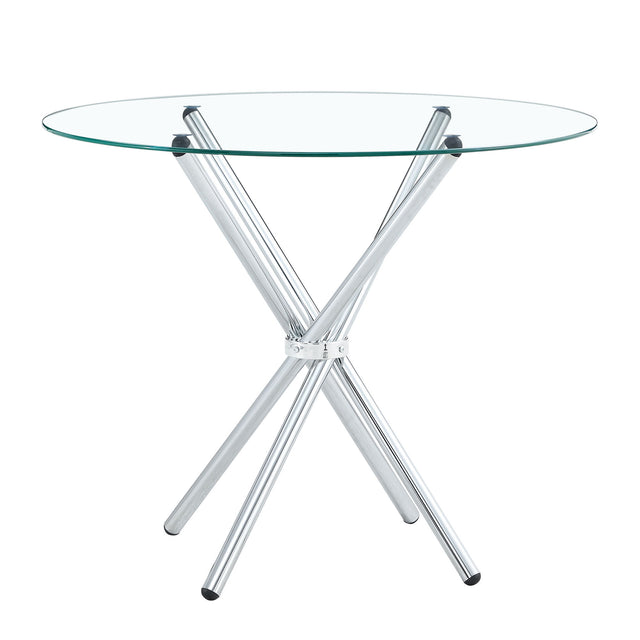 Modern Round Clear Glass Dining Table With Unique Metal Legs For 4 6 People - Silver is backordered and will ship as soon as it is back in stock.