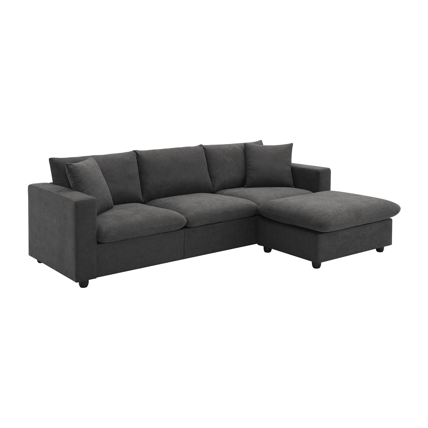 Modern Sectional Sofa, L-Shaped Couch Set With 2 Free Pillows, 4 Seat Polyester Fabric Couch Set With Convertible Ottoman - Black